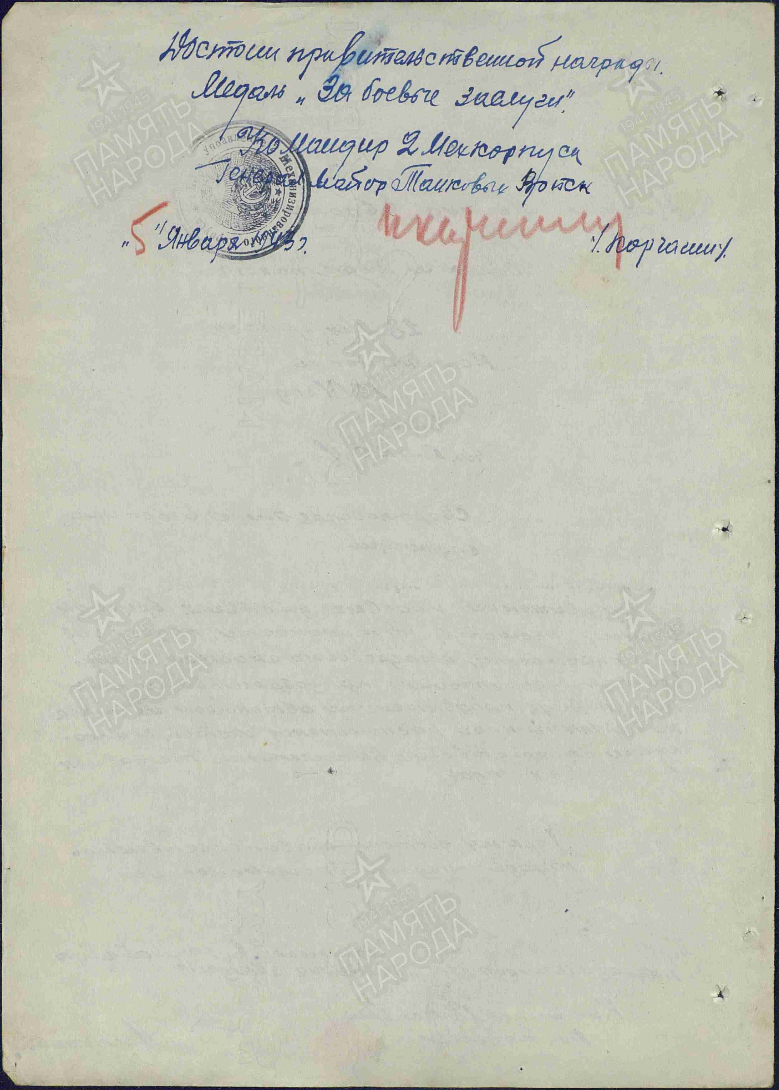 Помощник командира по хозяйственной части резервного танкового батальона 5 Отдельного учебного танкового полка 43 Армии 1 Прибалтийского фронта (1944)