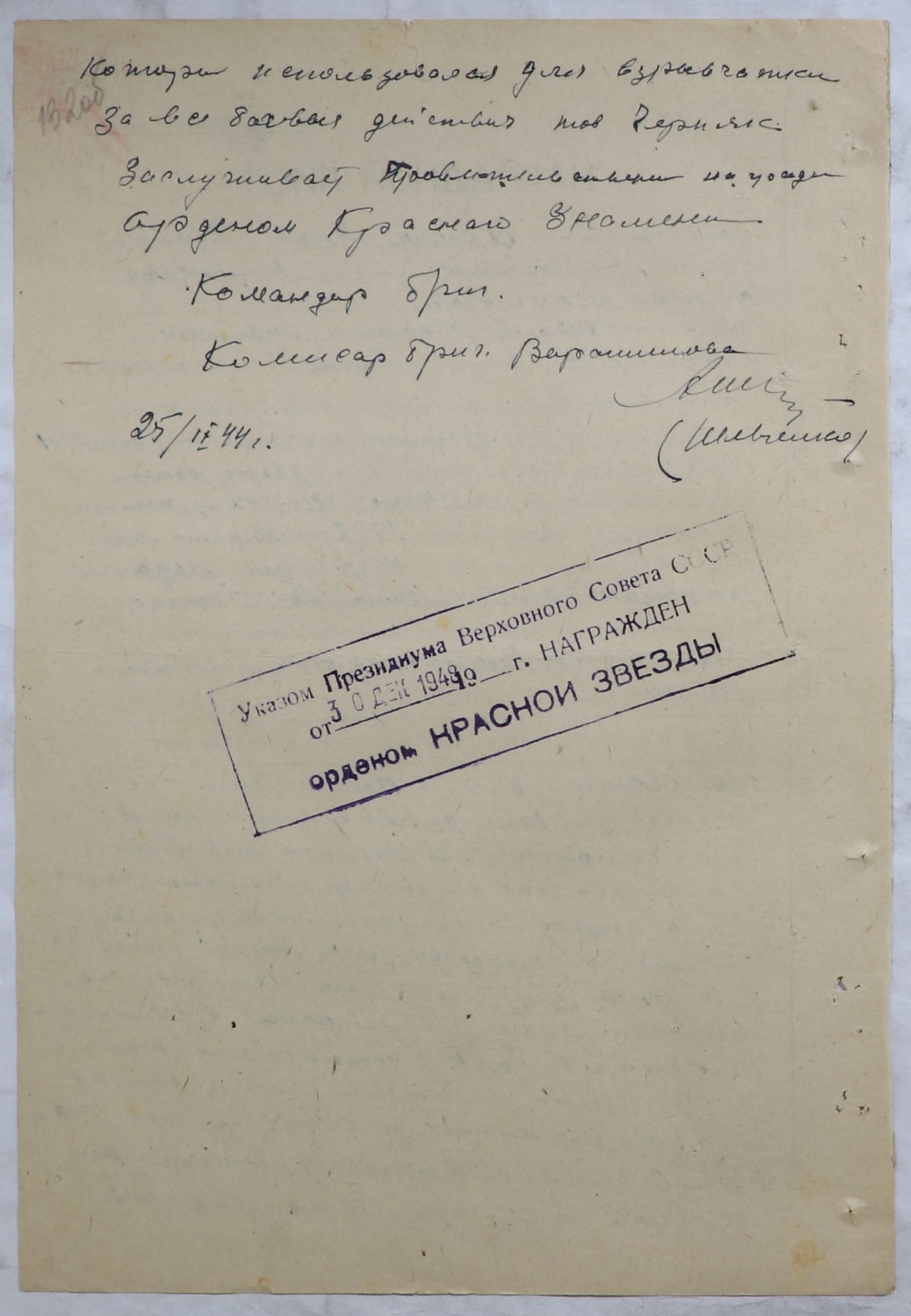 Действия тов. Черняка заслуживают Правительственной Награды – ордена Красного Знамени.