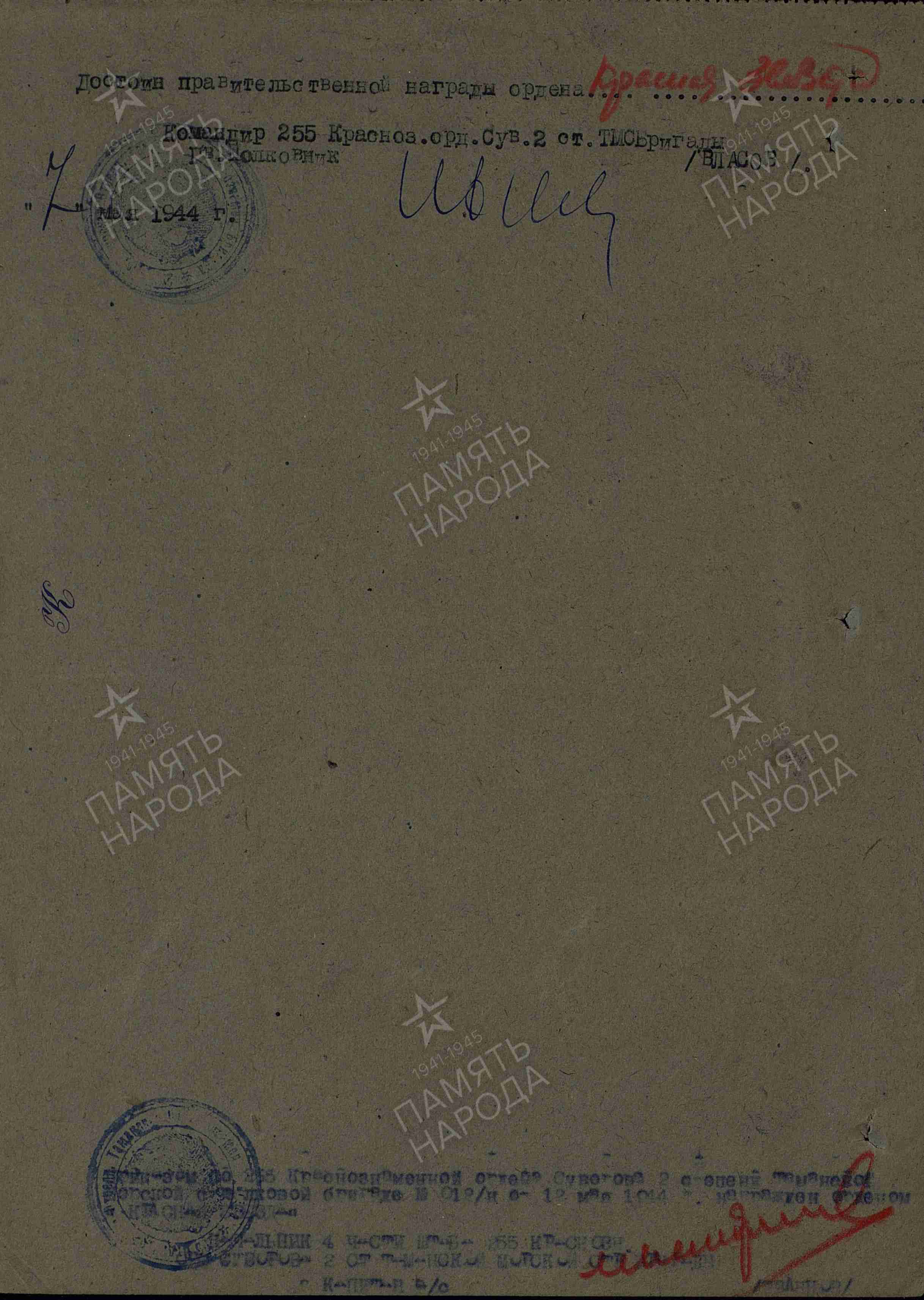 Стрелок 322 отдельного батальона бригады морской пехоты, 255 отдельной стрелковой Таманской дважды Краснознамённой орденов Суворова и Кутузова бригады морской пехоты, 47 армии, Черноморской группы войск, Закавказского фронта.