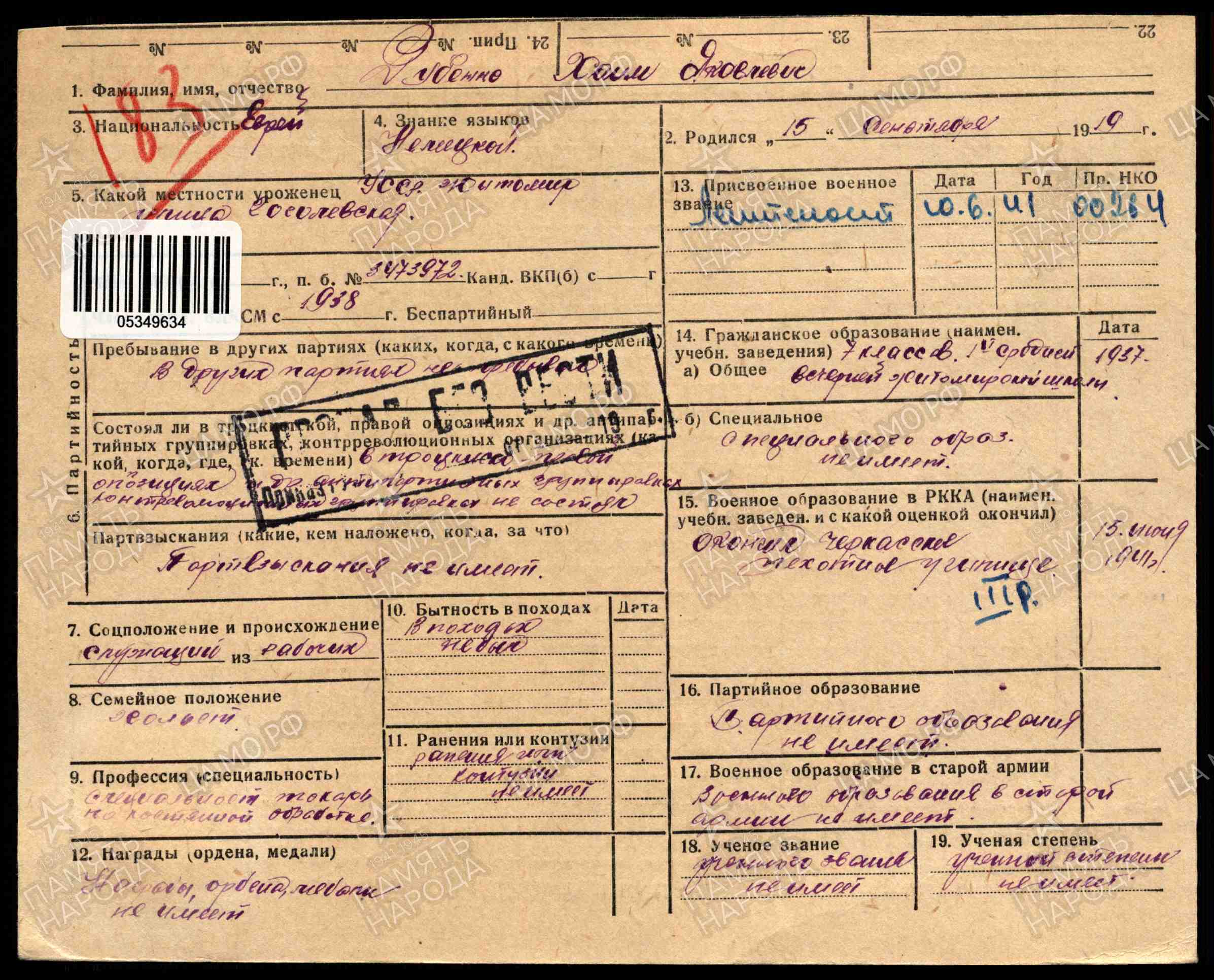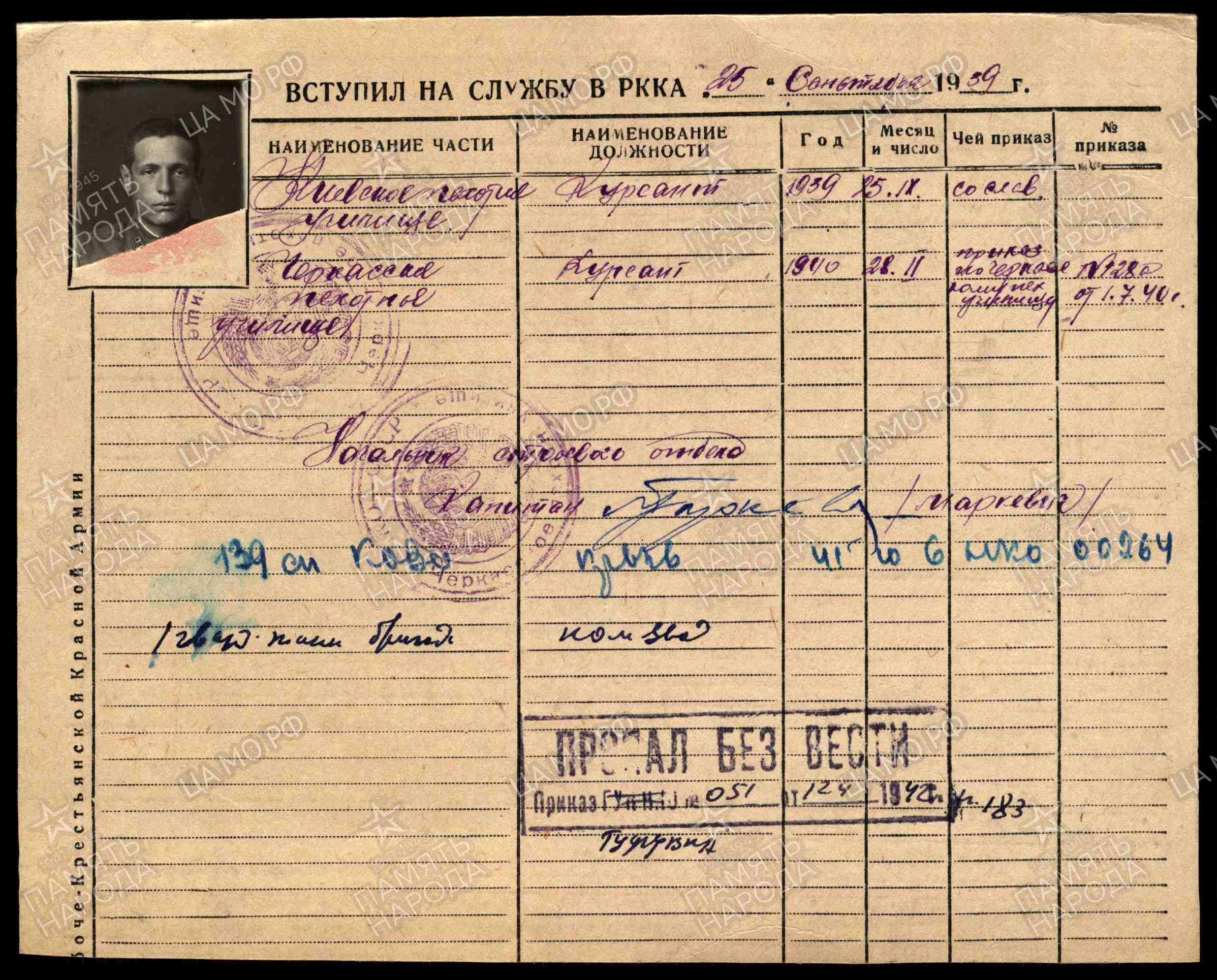 Данные из УПК (учётно - послужной карты, портал "ПАМЯТЬ НАРОДА").