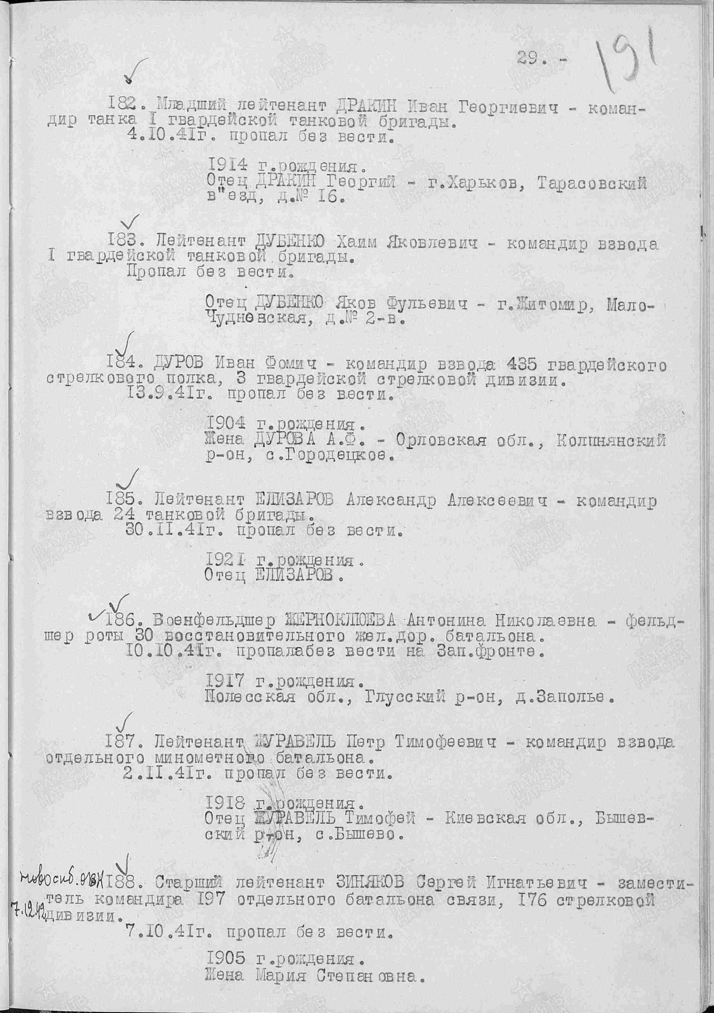 ЛИЧНАЯ СТРАНИЦА на лейтенанта ДУБЕНКО Х. Я.: