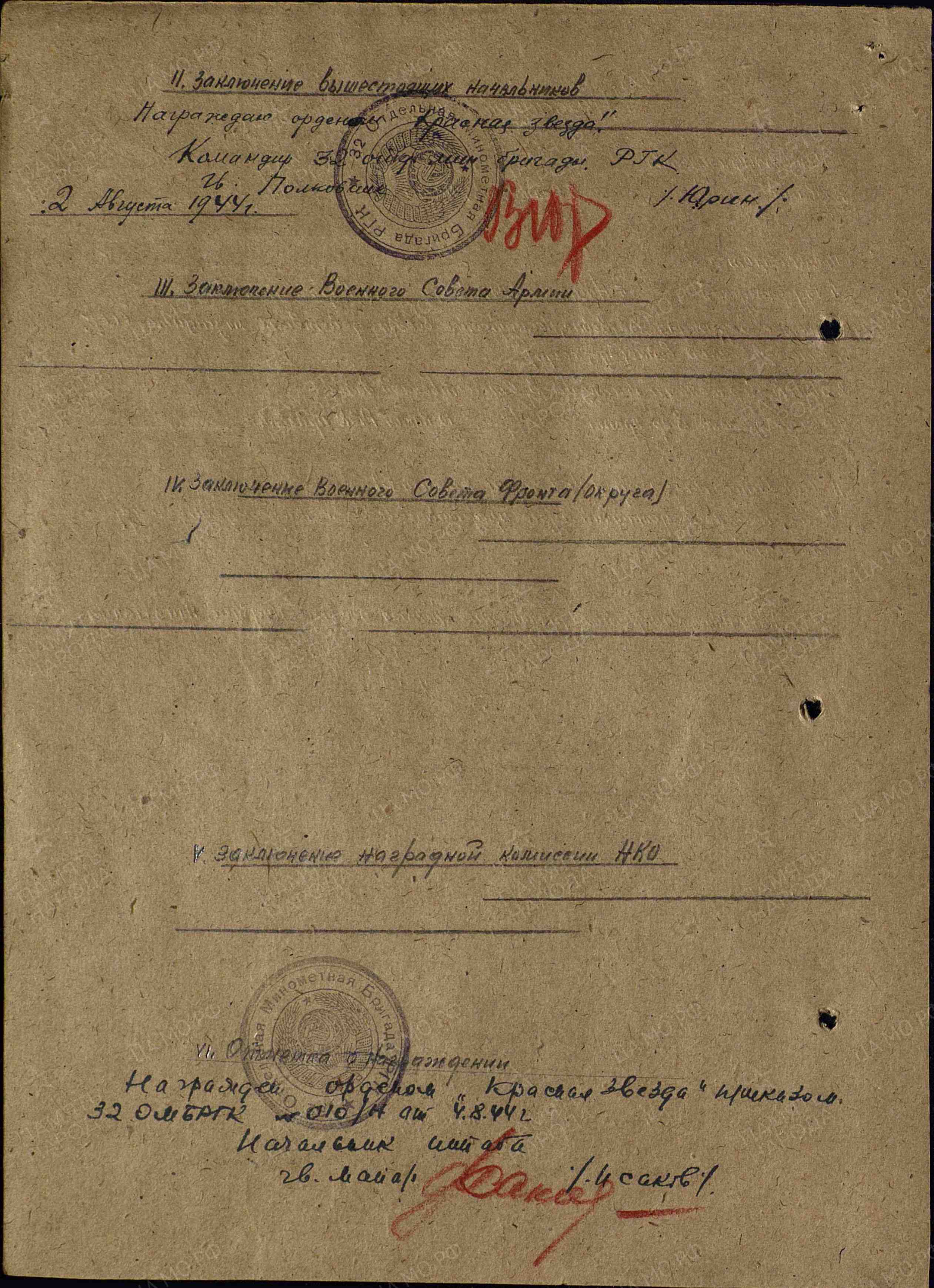 1. НАГРАДНОЙ ЛИСТ орден "КРАСНАЯ ЗВЕЗДА" с ЭЛЕКТРОННЫЙ БАНК ДОКУМЕНТОВ «ПОДВИГ НАРОДА В ВЕЛИКОЙ ОТЕЧЕСТВЕННОЙ ВОЙНЕ 1941-1945 ГГ.».