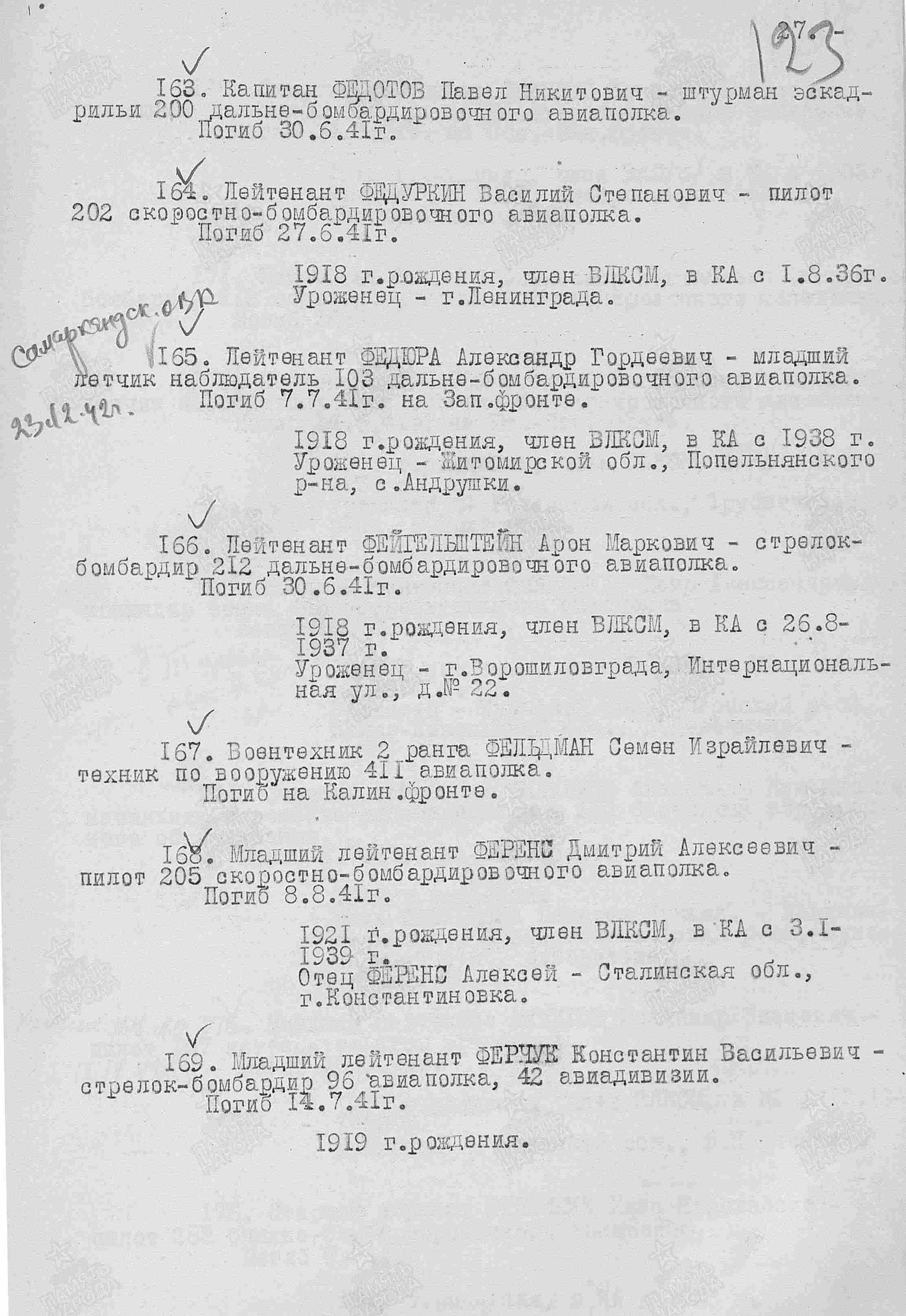 ЛИЧНАЯ СТРАНИЦА на старшего лейтенанта ФЕЙГЕЛЬШТЕЙНА А. М.: