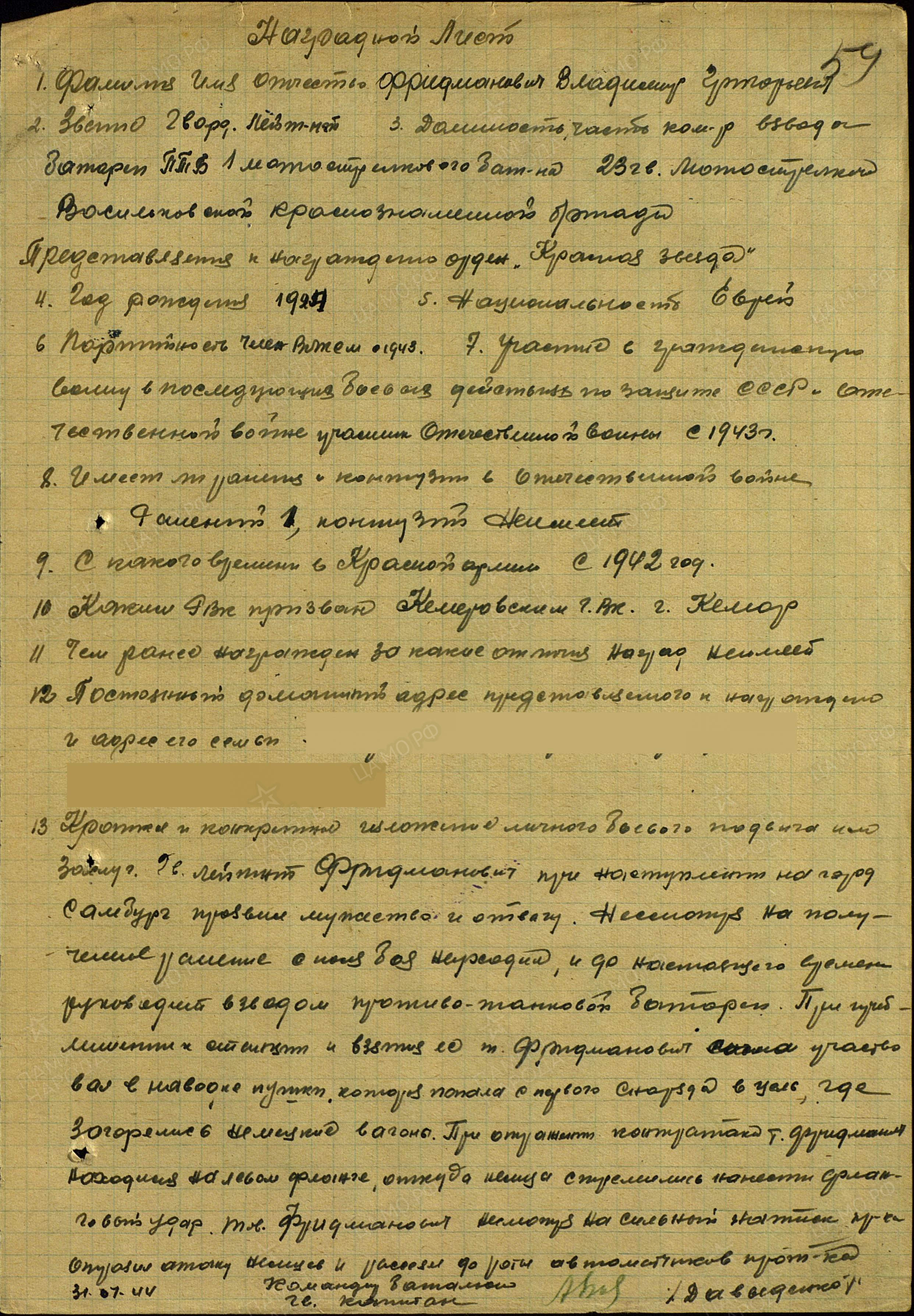 3. ЛИЧНАЯ СТРАНИЦА на гвардии полковника ФРИДМАНОВИЧА В. Г.: