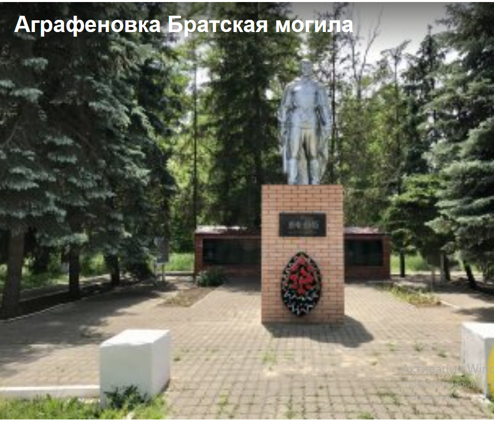 6. Захоронение: РОССИЯ, Ростовская область, Родионово - Несветайский район, слобода Аграфеновка, братская могила ( https://clck.ru/S97is ):
