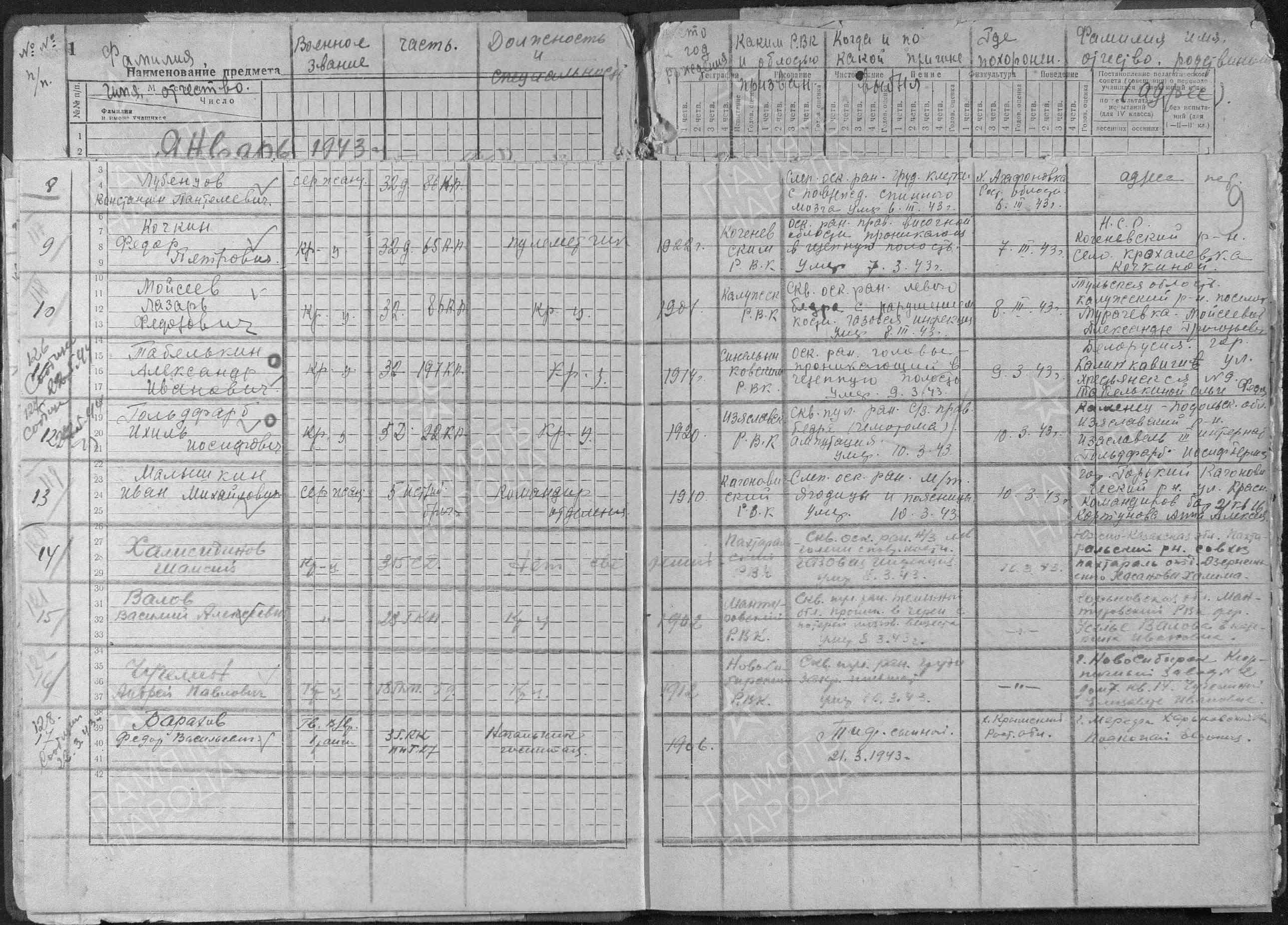 ЛИЧНАЯ СТРАНИЦА на гвардии красноармейца ГОЛЬДФАРБА И. И.:
