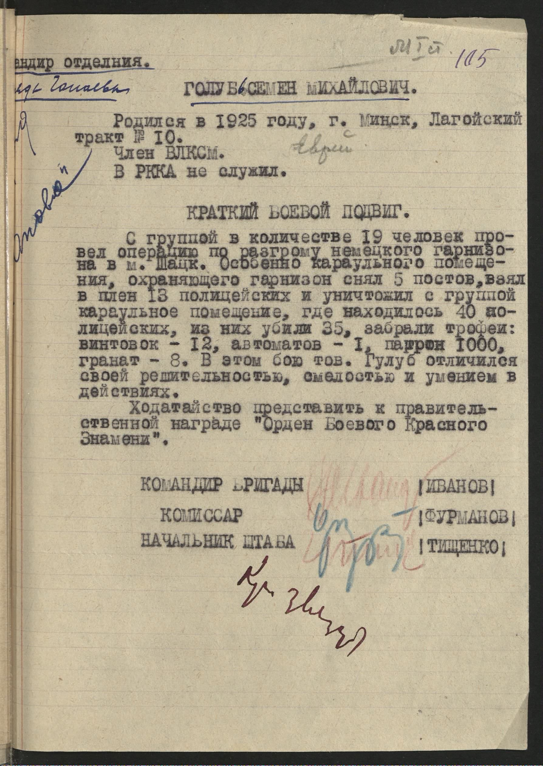 Голуб Семен Михайлович родился в Минске в 1925 году. Еврей.