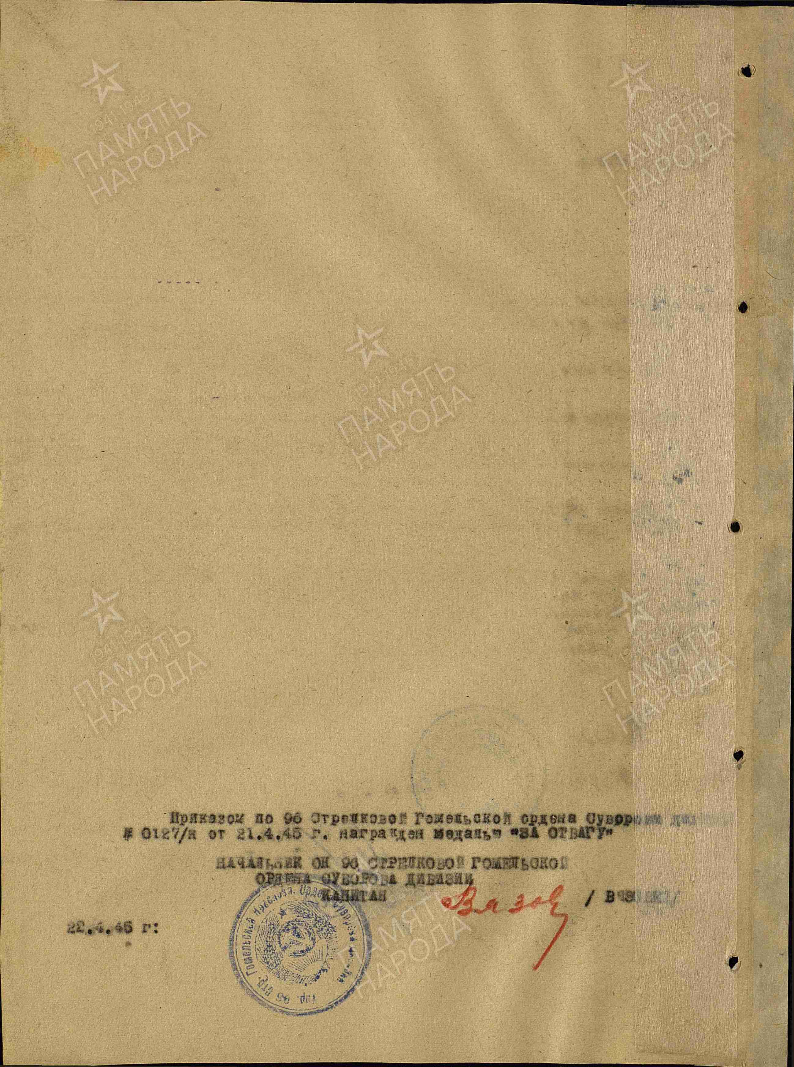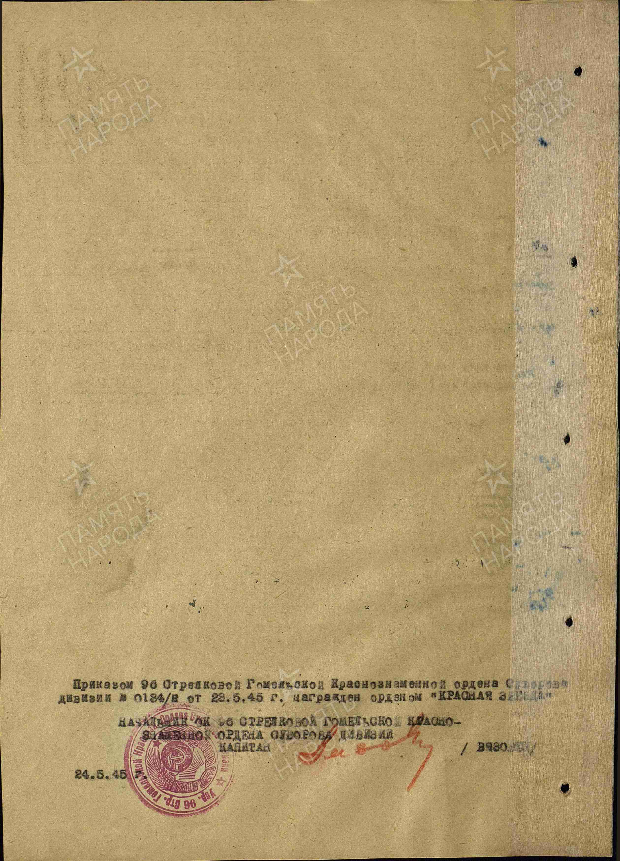 Представлялся к наградам: ордену "КРАСНОГО ЗНАМЕНИ".