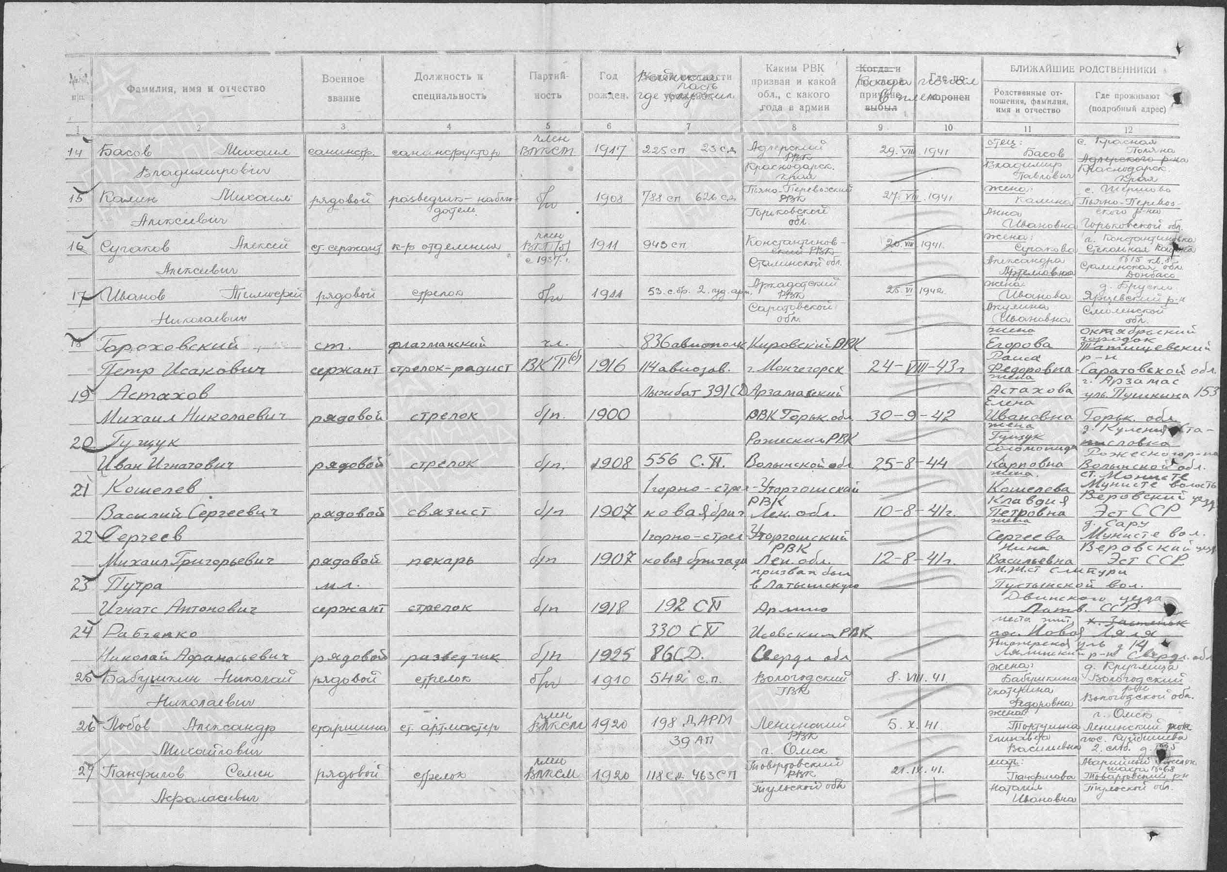 Данные из УПК (учётно - послужной карты, портал "ПАМЯТЬ НАРОДА").