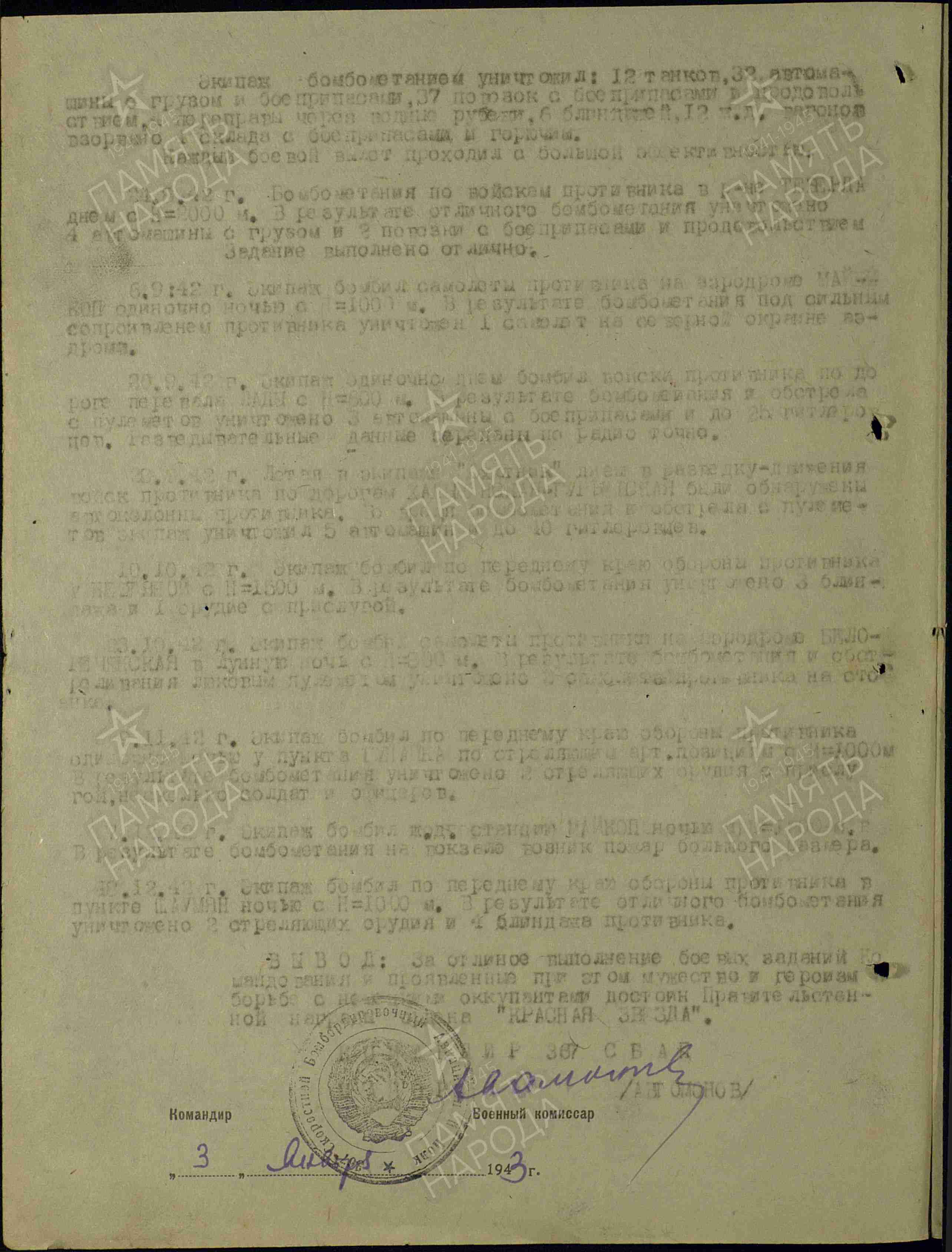 Даты подвига: 02.06.1942, 09.06.1942, 11.06.1942-14.06.1942, 16.06.1942-19.06.1942