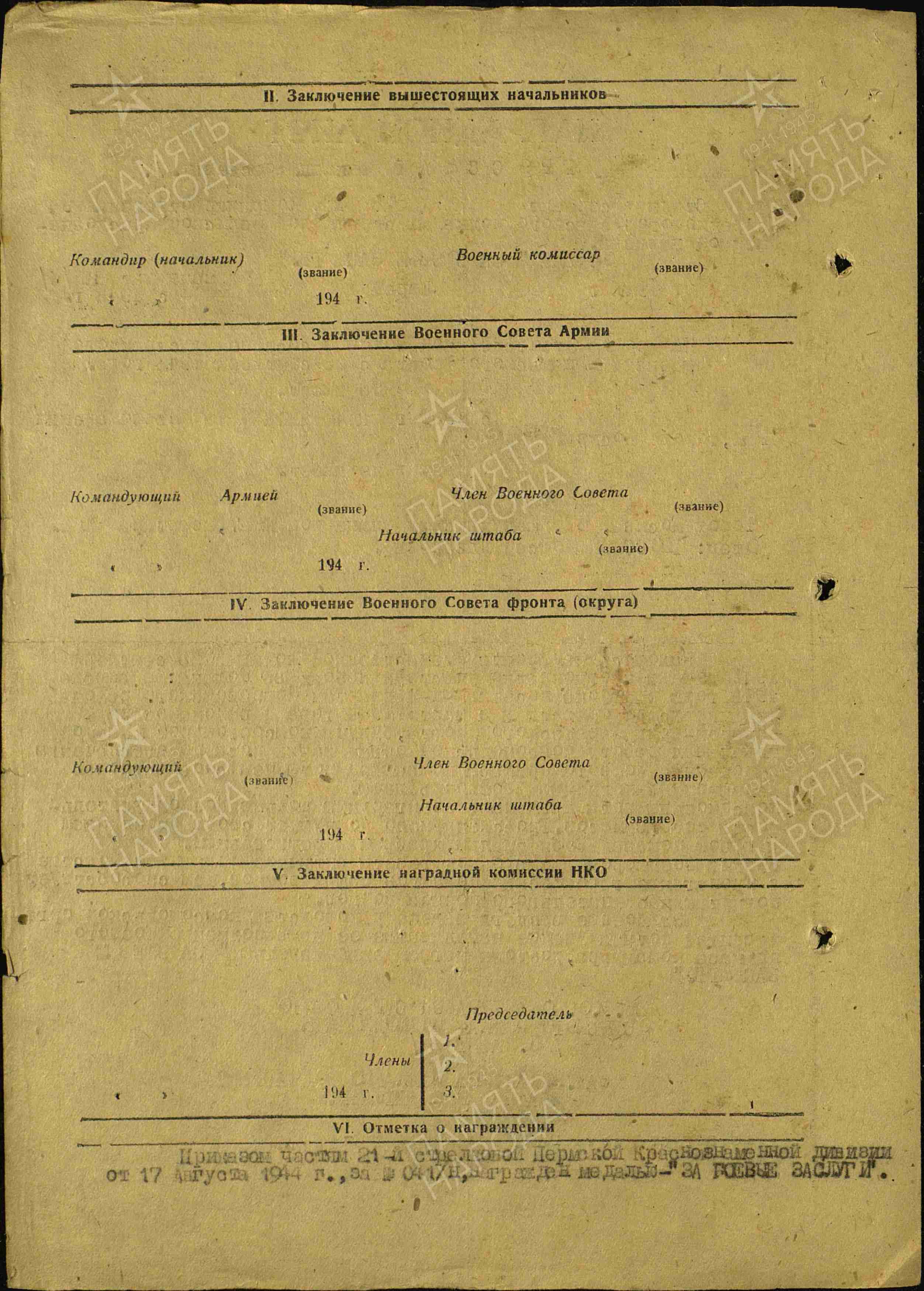 Медаль "ЗА БОЕВЫЕ ЗАСЛУГИ" (08.1944).