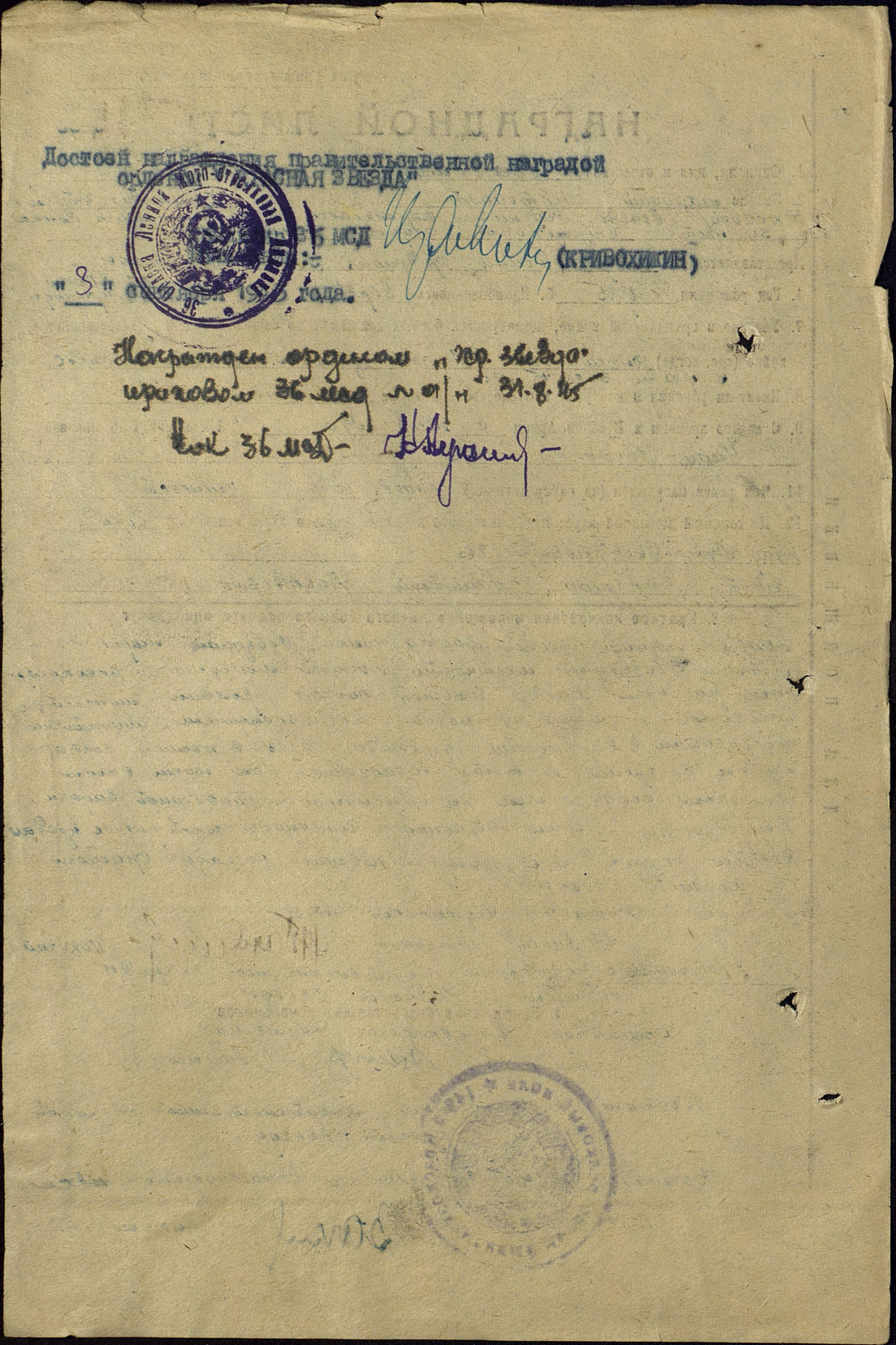 Особо ничего родным о войне не рассказывал. Знают, что участвовал в Хинганском походе (Забайкальский фронт), после войны вернулся в Барнаул, был боксером - завоевал в 1944 году первенство Сибири и Дальнего востока.