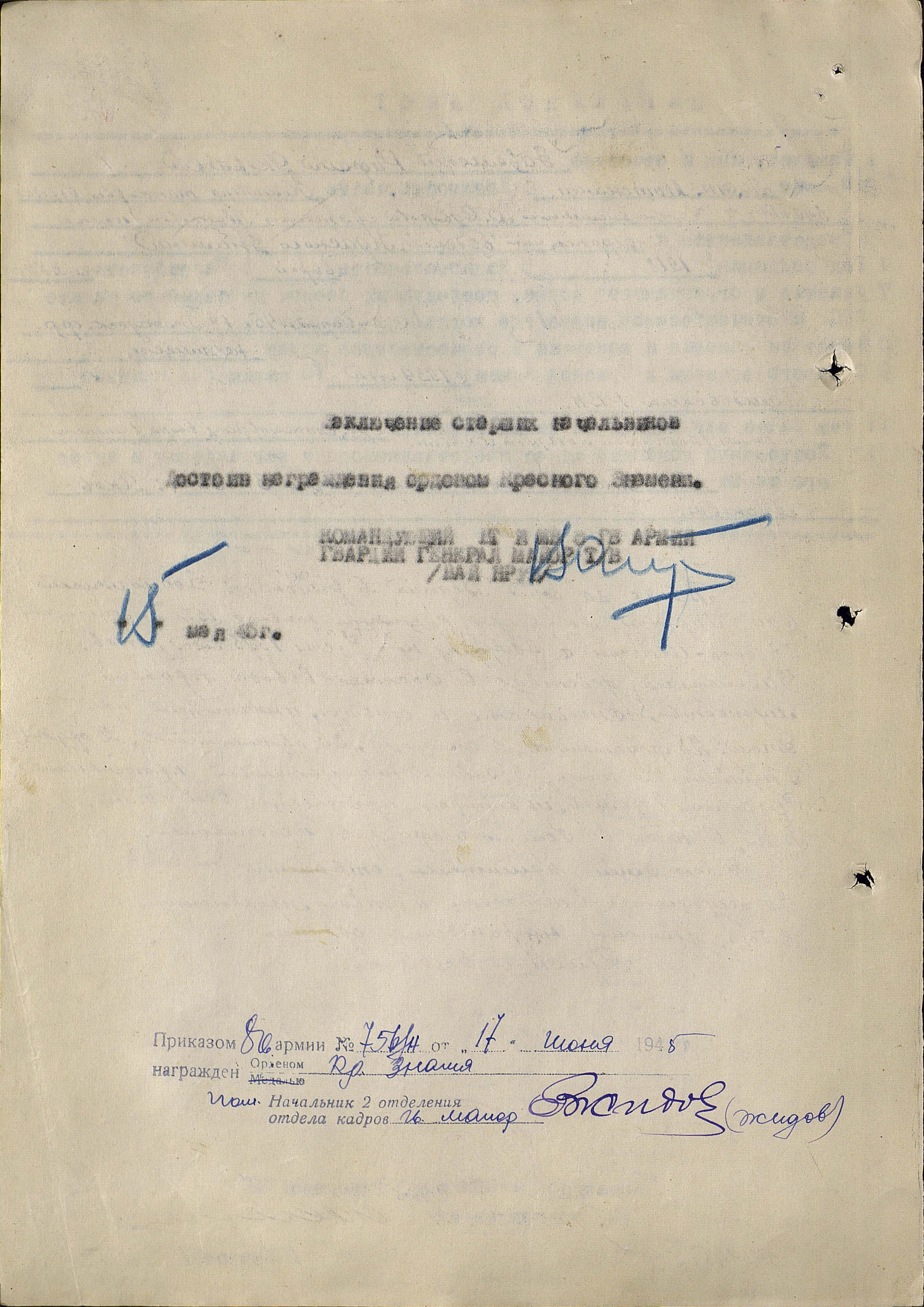 Это было в начале февраля 1945 года. Преследуя врага, мы подошли к широкой и быстрой реке Одер. Форсировав водную преграду, наши части захватили плацдарм на левом берегу реки между Франкфуртом-на-Одере и Кюстрином в 70 километрах от Берлина. Переправились через Одер и сразу вступили в бой по расширению плацдарма для сосредоточения наших войск для последнего штурма и взятия Берлина. Бои продолжались периодически около месяца.