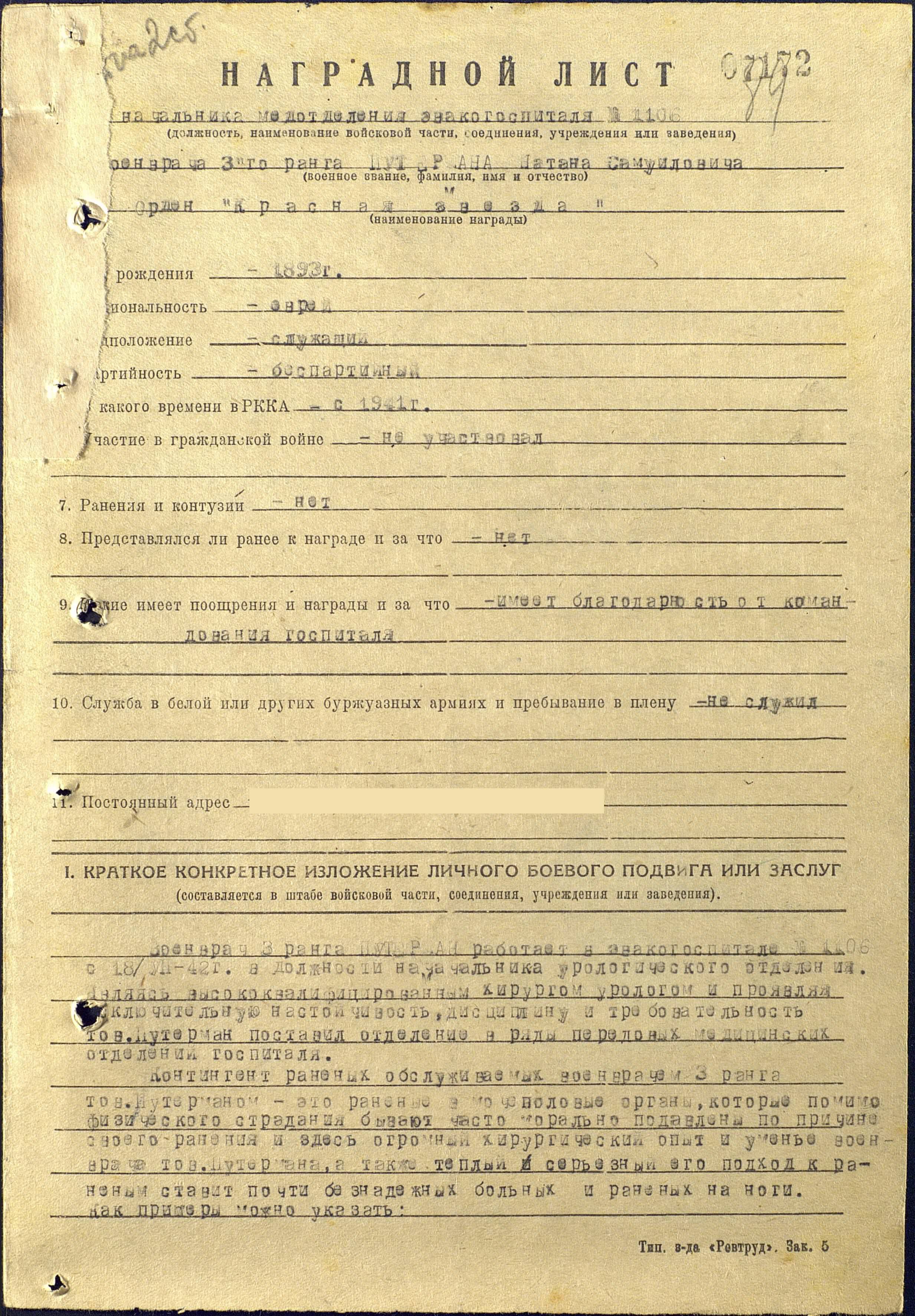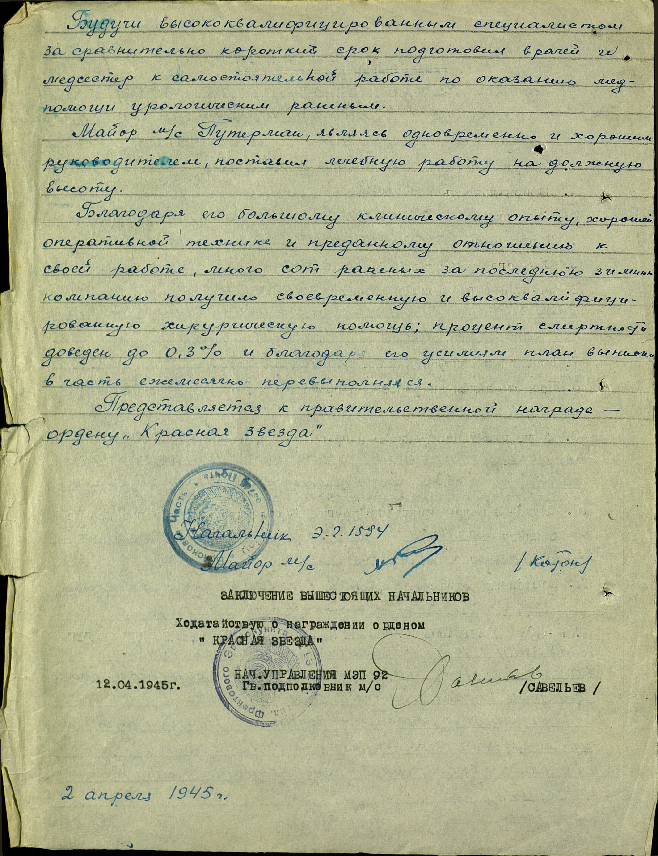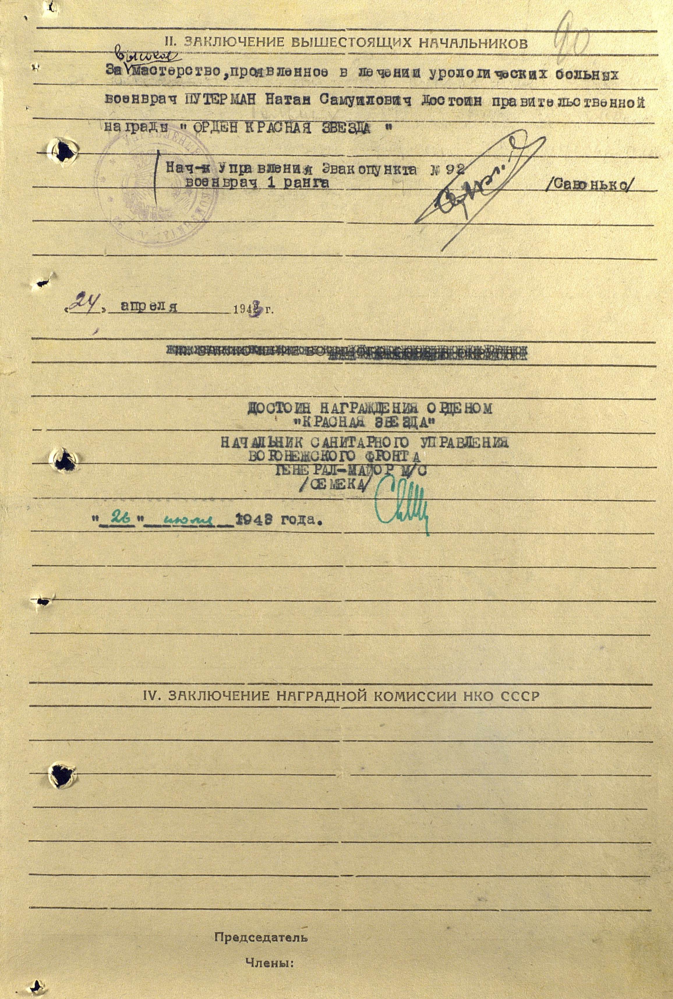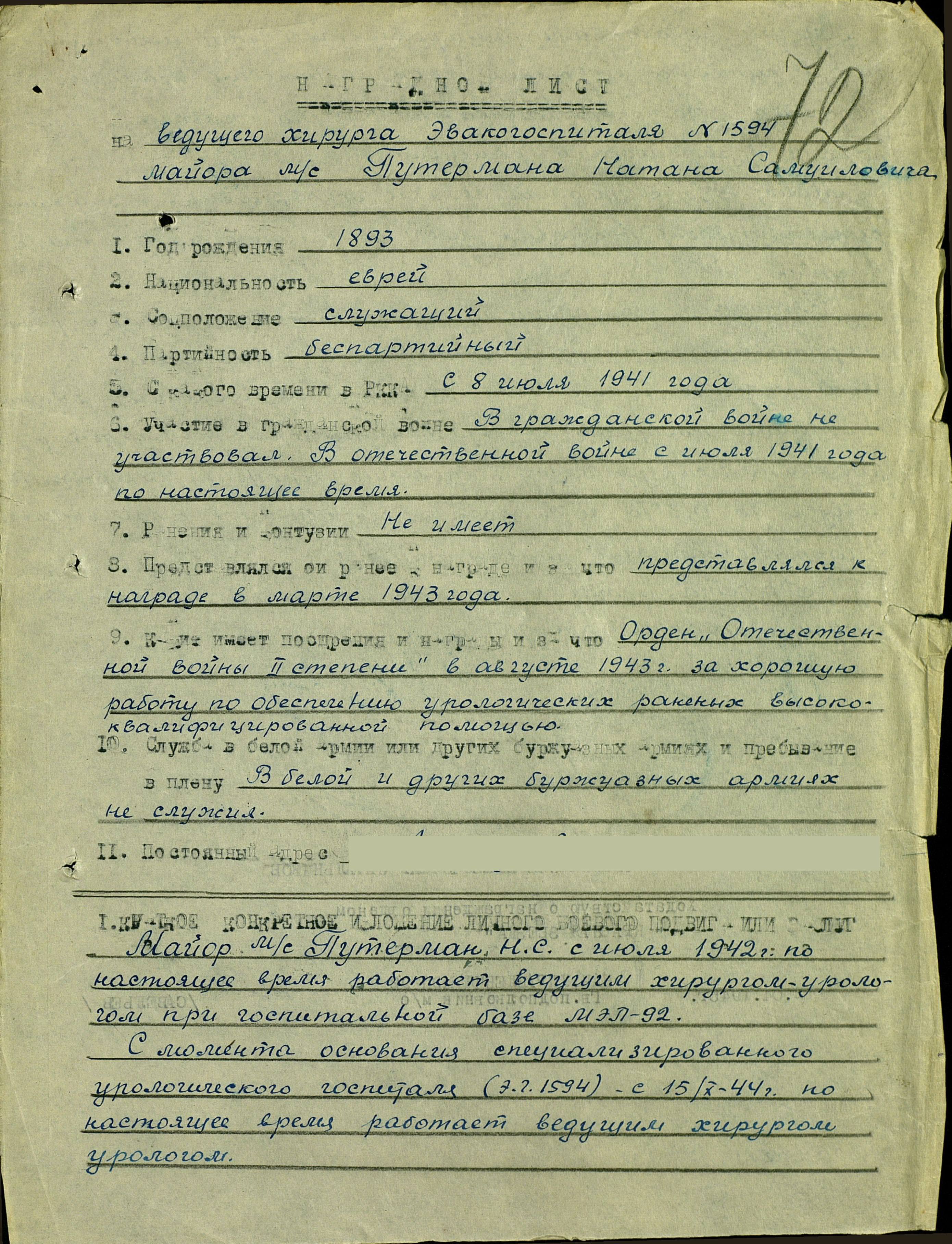Путерман Натан Самуилович (Семенович) родился в 1893 году. Призван в РККА 8 июля 1941 года.
