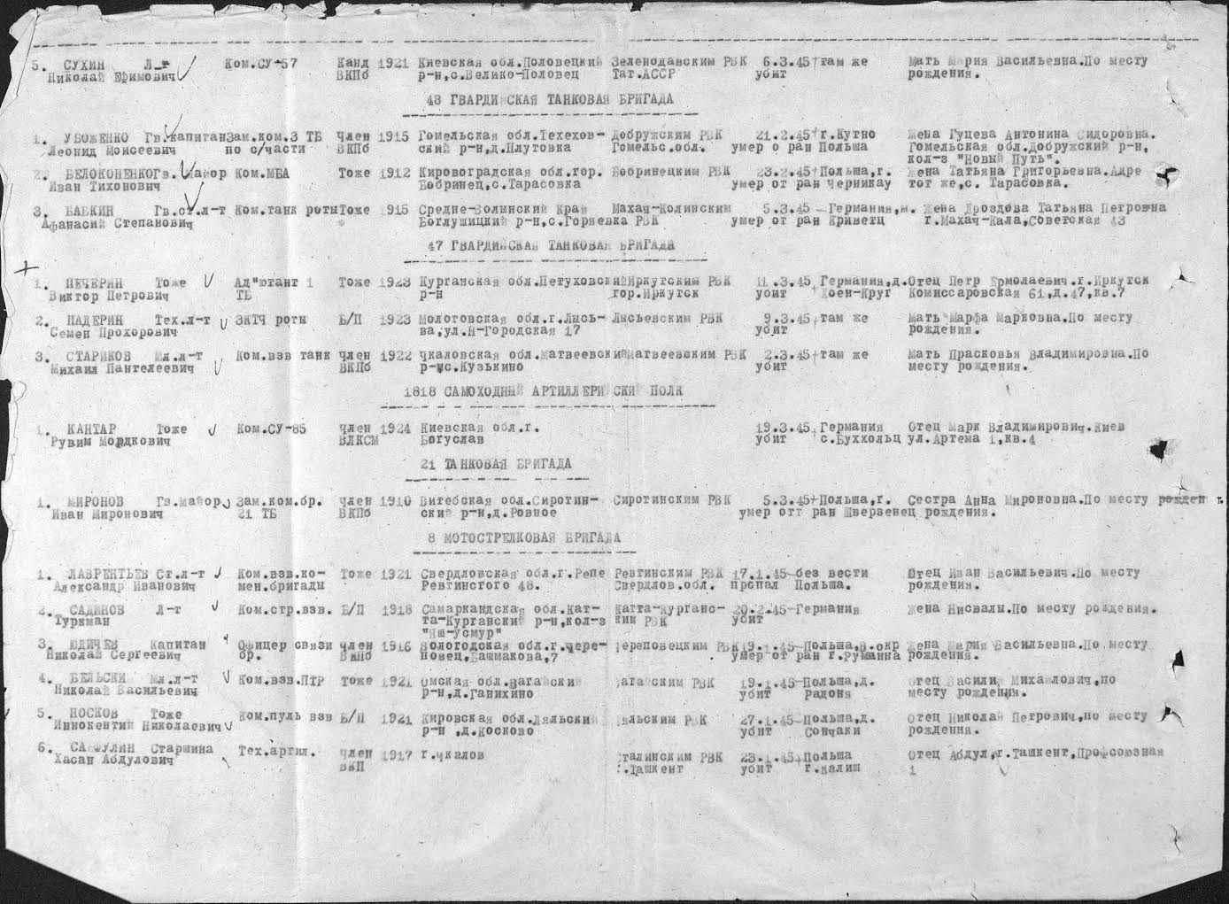 1. Именной список, безвозратных потерь, личного состава 1818 самоходного артиллерийского полка, 1 Белорусского фронта.