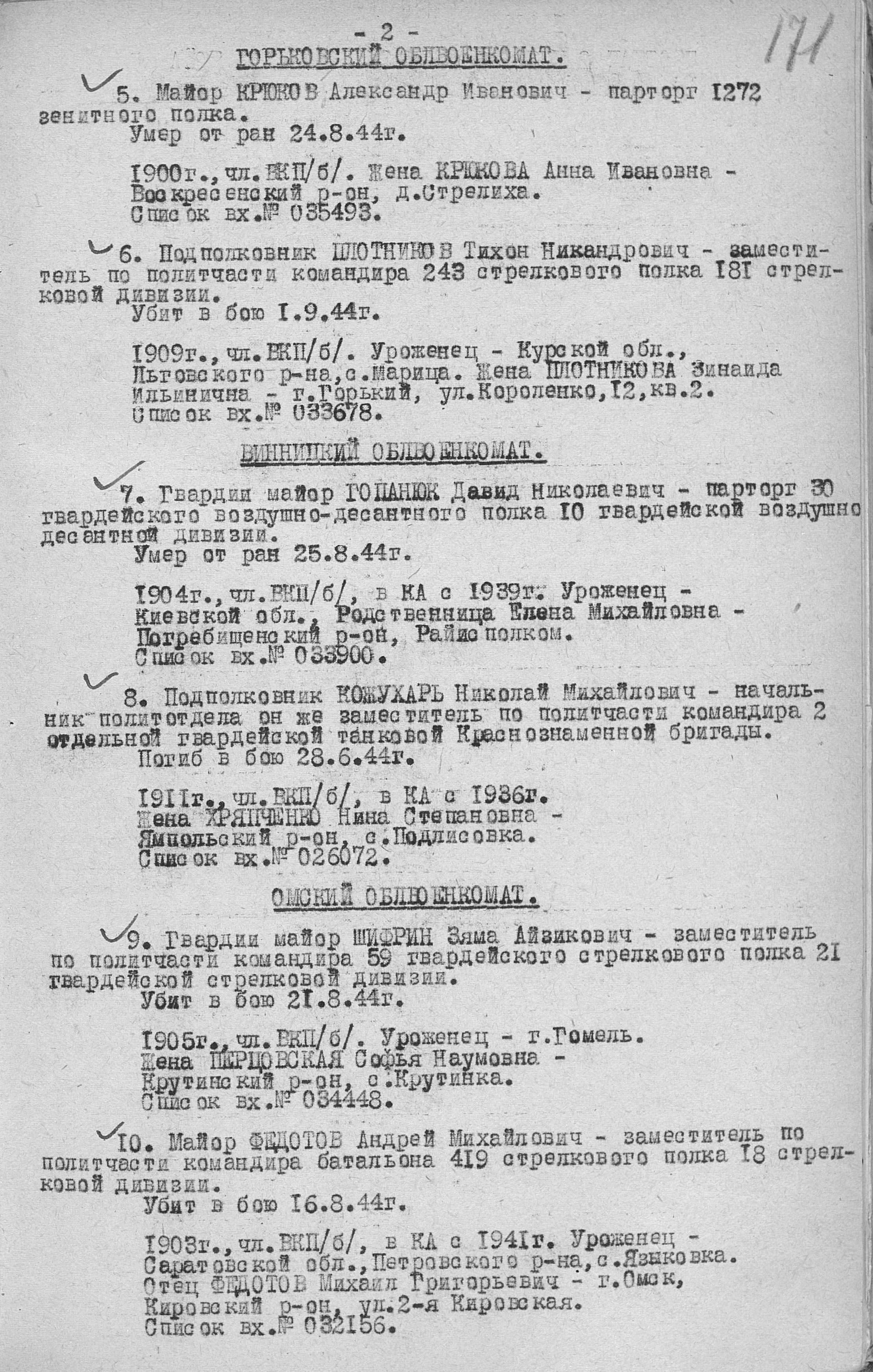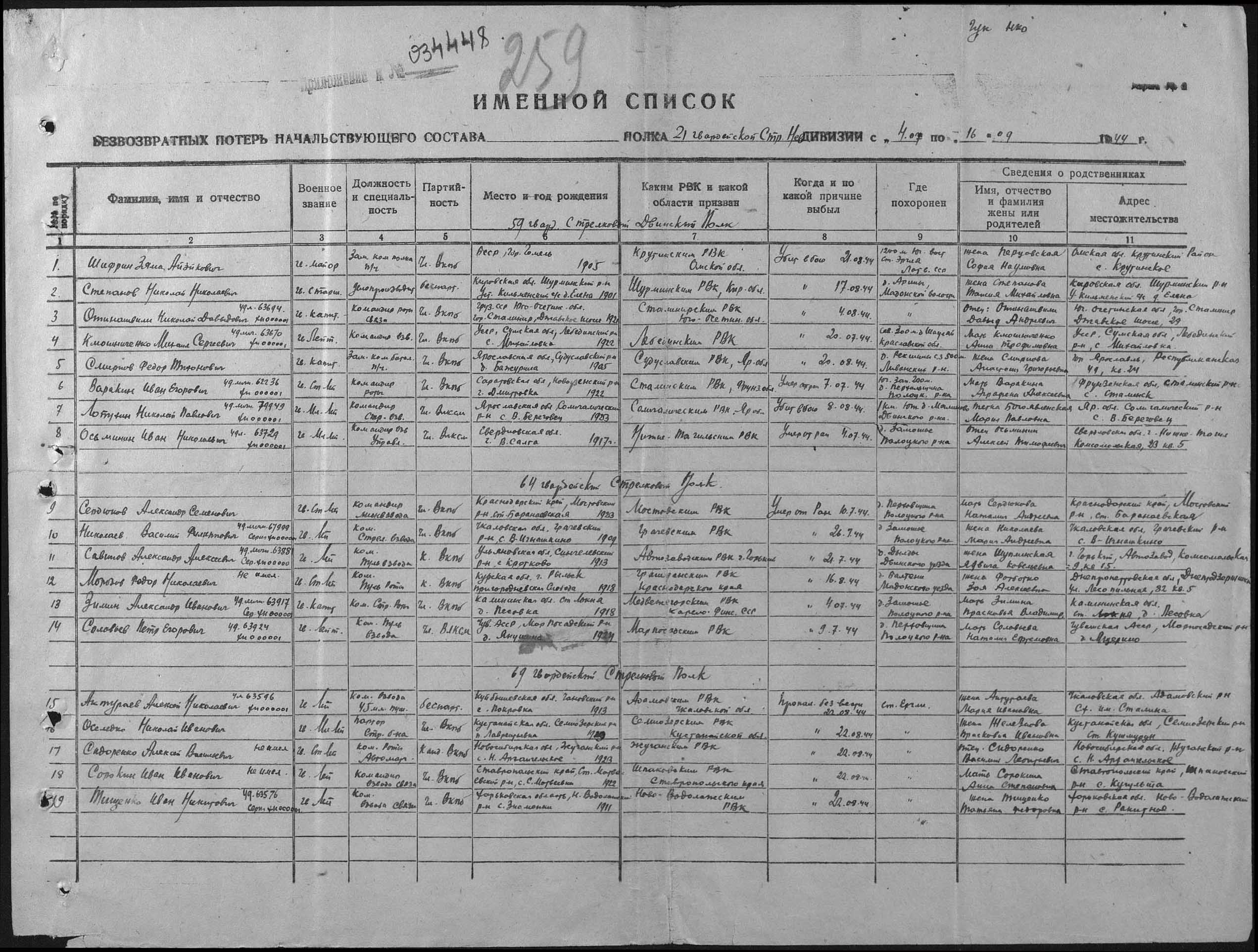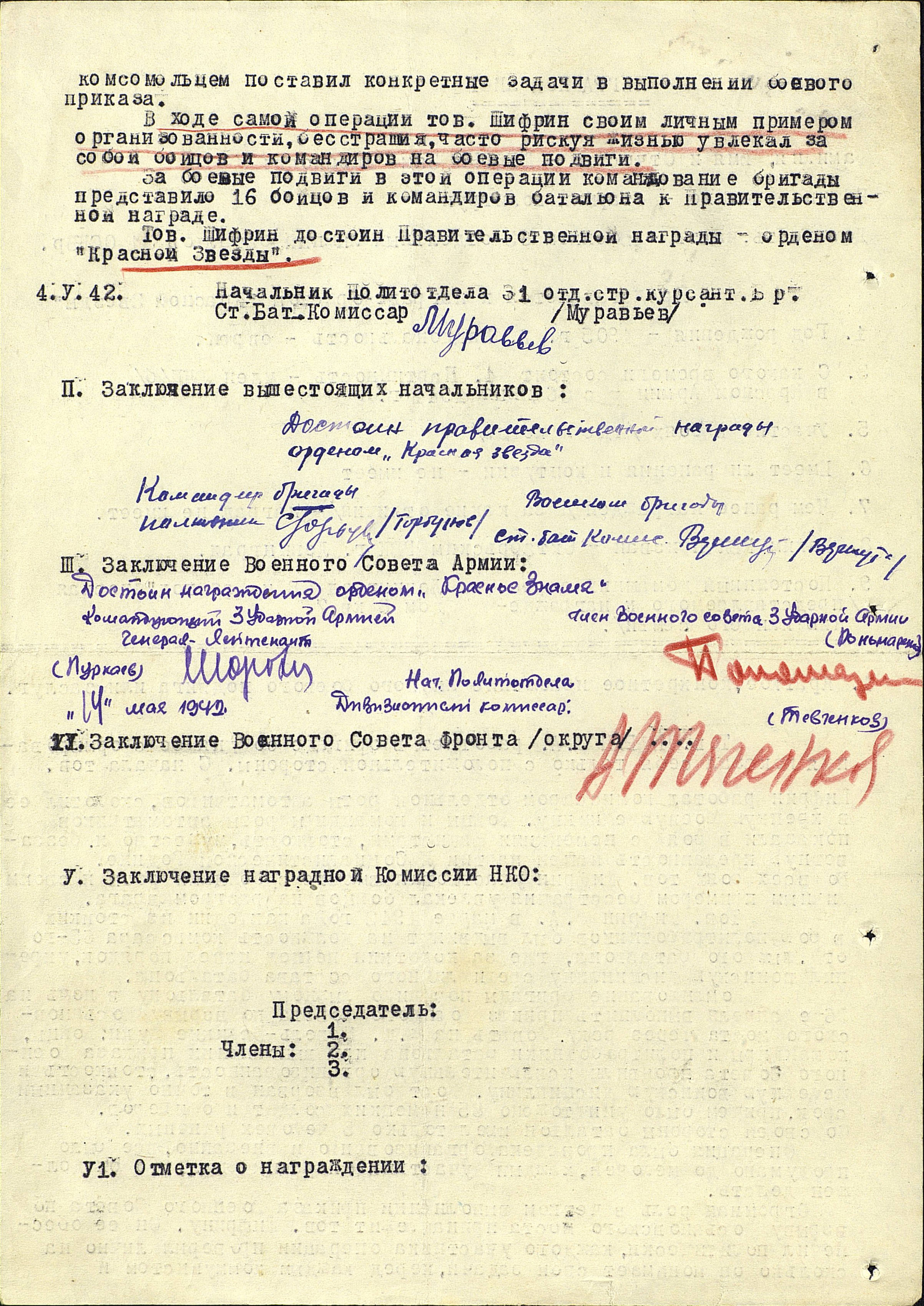 Гвардии майор ШИФРИН ЗЯМА АЙЗИКОВИЧ, 1905 г.р., родился - г. Гомель, Белорусской ССР. В РККА и на фронте Великой Отечественной войны с 1941 г. - Заместитель командира по по политчасти 59 гвардейского Двинского стрелкового полка, 21 гвардейской стрелковой дивизии Боевые награды: 1.Орден "КРАСНОГО ЗНАМЕНИ" (номер записи в базе данных: 10036854 на старшего политрука 63-го отдельного Лыжного батальона 31 ОСКБр (отдельной стрелковой Краснознамённой бригады). 2. Орден "КРАСНАЯ ЗВЕЗДА"( номер записи в базе данных: 18462186 на заместителя командира по политической части 59-го гвардейского СП 21-й гвардейской Невельской СД); 3.Орден "ОТЕЧЕСТВЕННАЯ ВОЙНА" 1 степени (номер записи в базе данных: 32799776) на сайте http://www.podvignaroda.mil.ru/ Общедоступный электронный банк документов «Подвиг Народа в Великой Отечественной войне 1941-1945 гг.» Убит, в бою, 21. 4. 1944. Захоронен: 1.2 км. юго-восточнее станции ЭРГЛА,Латвия. . Вечная память Героям павшим за Свободу и Независимость нашей Родины! http://www.pobeda1945.su/frontovik/20864