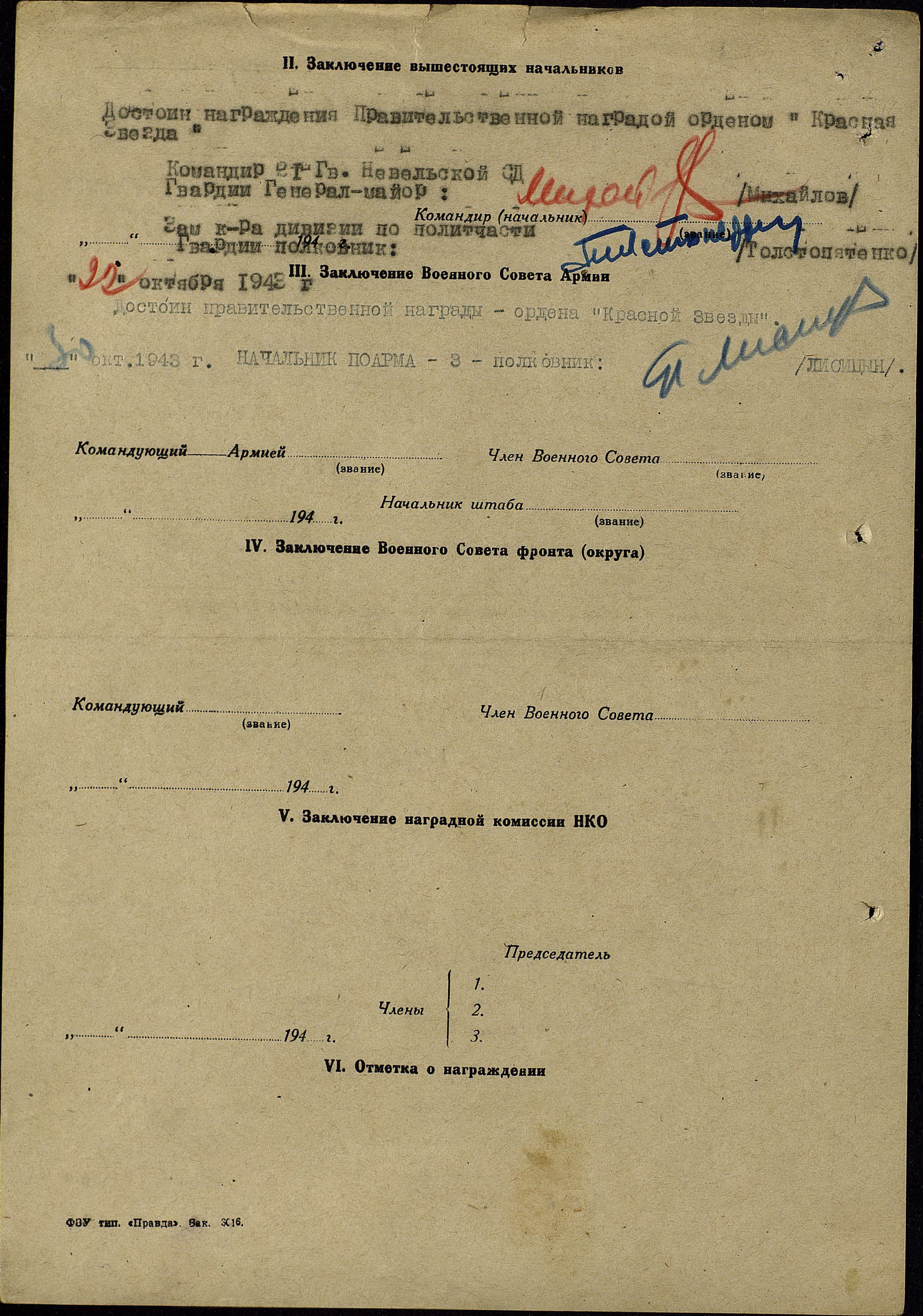 заместитель командира по по политчасти 59-го гвардейского Двинского стрелкового полка, 21-й гвардейской стрелковой дивизии