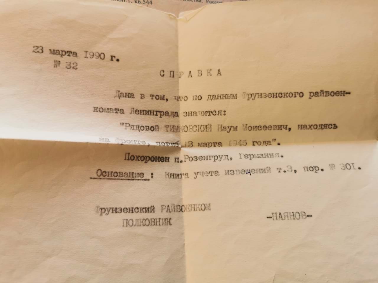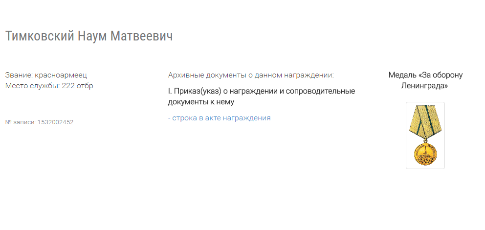 Тимковский Наум Моисеевич родился в 1900 году, а городе Минске. Еврей. Призван в РККА 12.06.1942, Дзержинским РВК, г. Ленинграда, Дзержинского района.