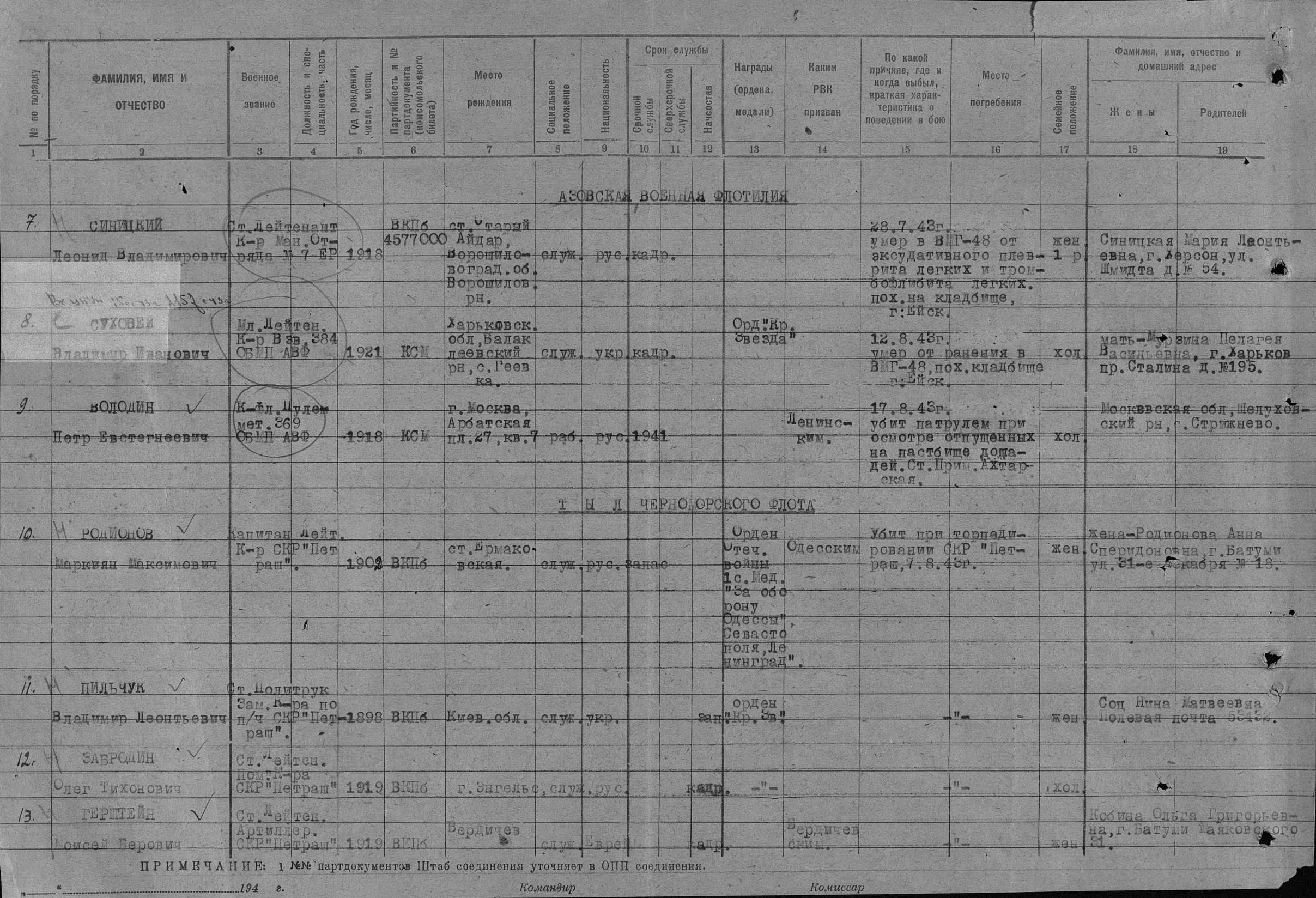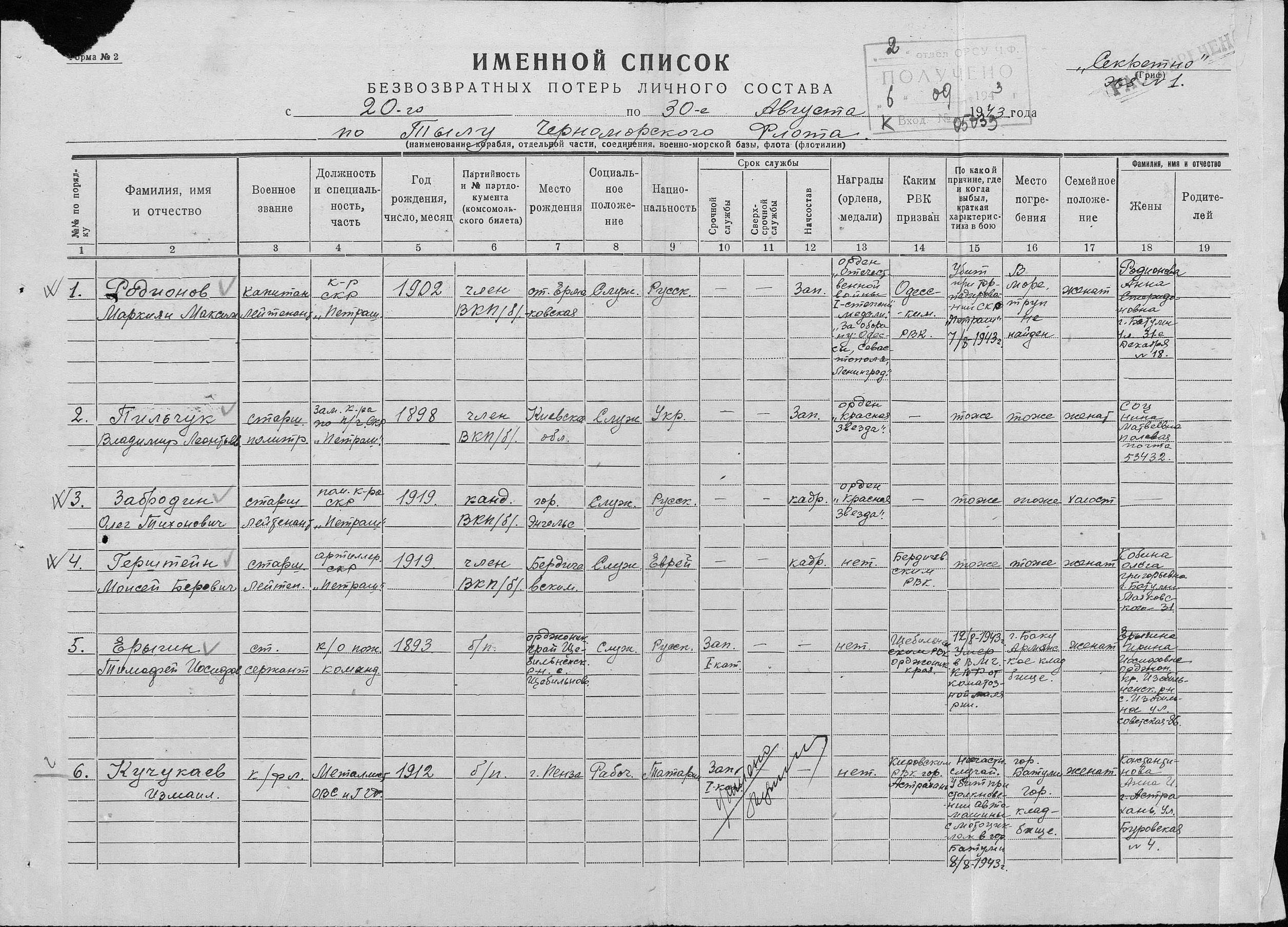 1. Именной список безвозвратных потерь командного состава по тылу ЧФ(с ОБД "МЕМОРИАЛ").