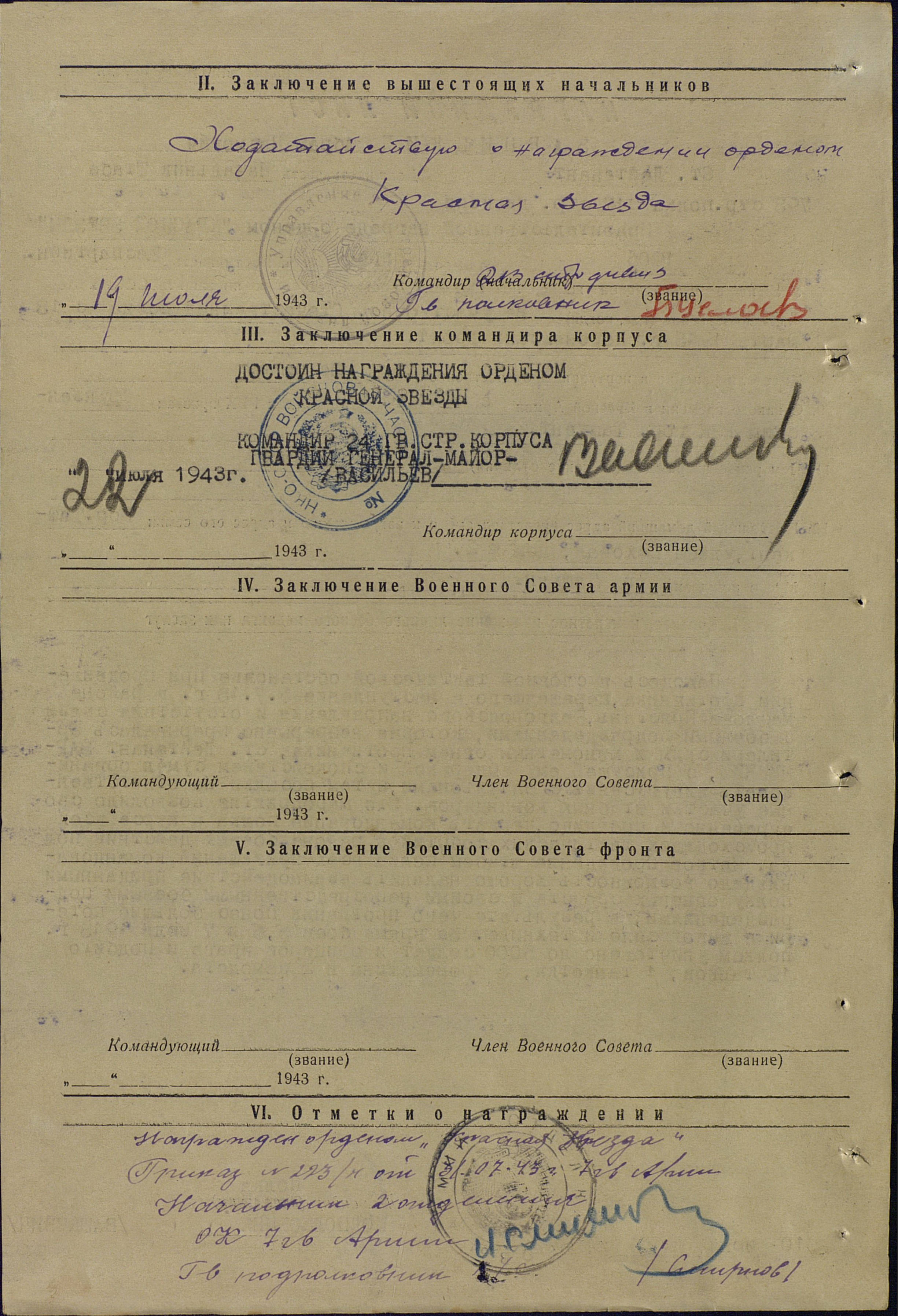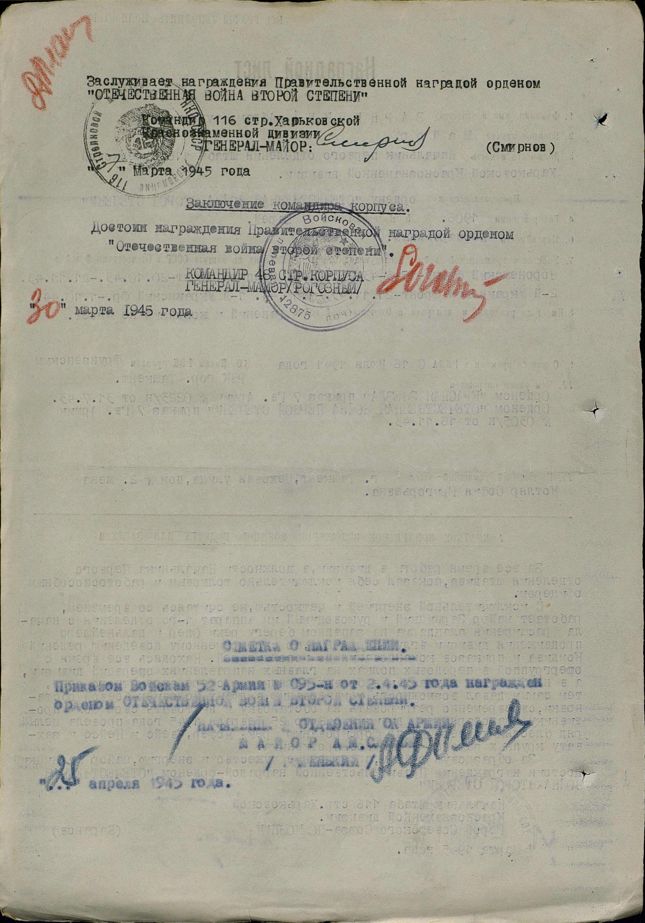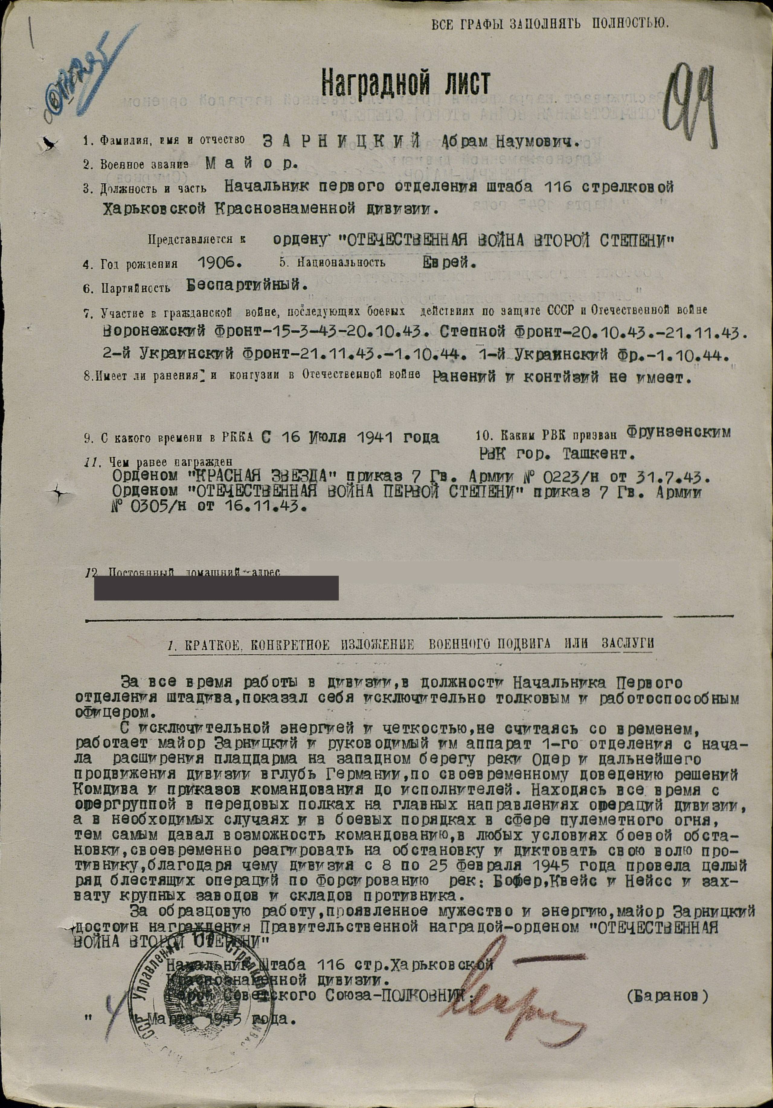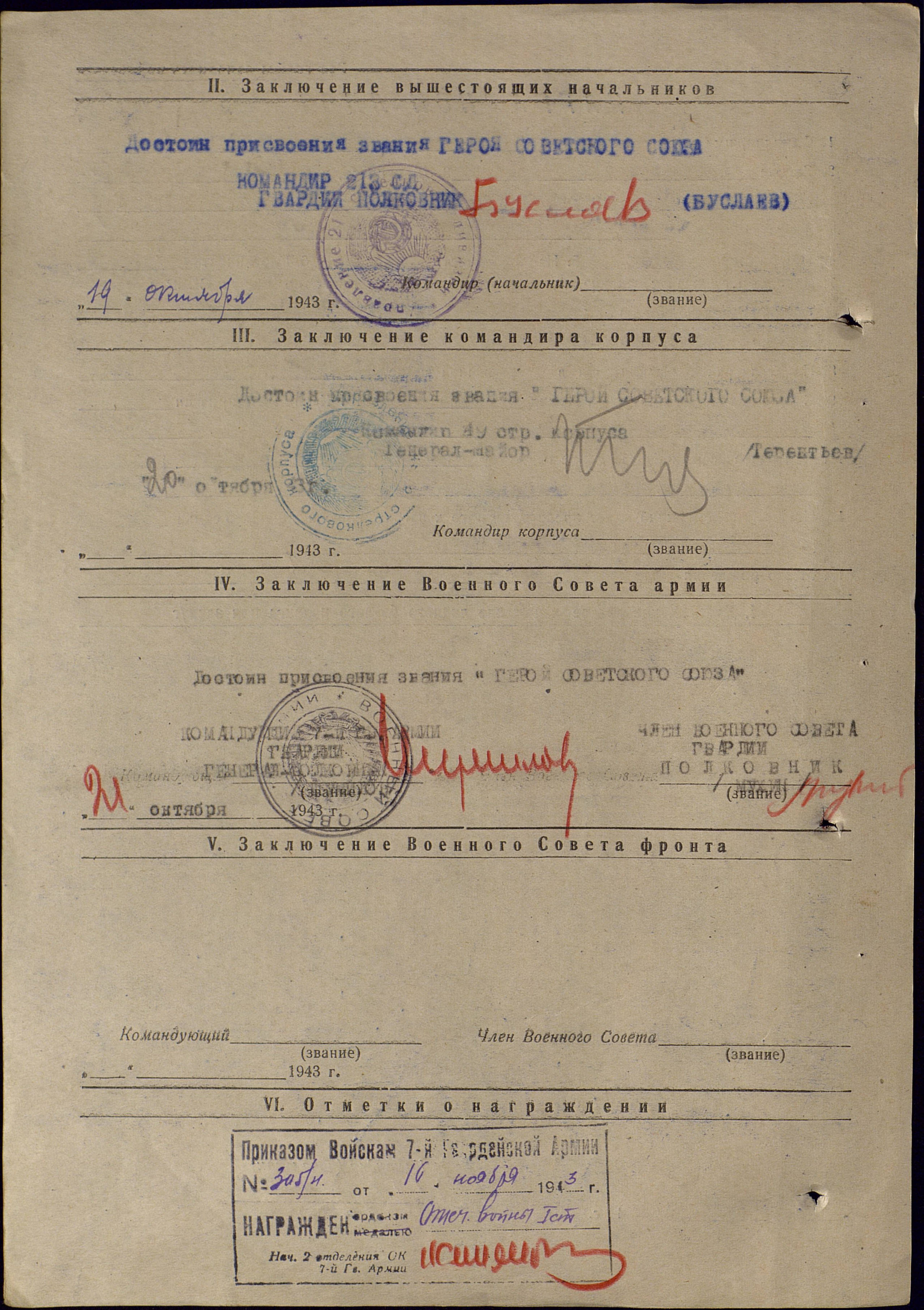 Тов. Зарницкий за проявленные мужество, отвагу и героизм достоин присвоения звания Героя Советского Союза.