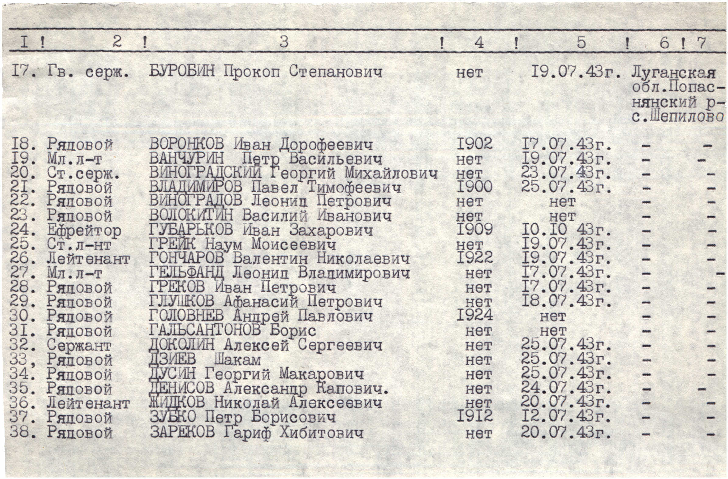 Гвардии младший лейтенант ГЕЛЬФАНД ЛЕОНИД ВЛАДИМИРОВИЧ, 1922 года рождения, место рождения - Украинская ССР, г. Харьков, еврей. В РККА призван Зельмановским РВК, АССР Немцев Поволжья, в 1941 году. На фронте Великой Отечественной войны - Командир пулемётного взвода 181 гвардейского стрелкового полка, 61 гвардейской стрелковой Славянской Краснознамённой дивизии, 3 гвардейской Армии, Юго-Западного фпронта. Ранения: нет. Боевые награды: нет. С Великой Отечественной войны не вернулся - убит, в бою, 17.07.1943 года. Извещение: Саратовский ОВК, РСФСР, Саратовская область, г. Зельман, 6-я улица, дом 116, кв. №1, отец - Гельфанд Владимир Семёнович. Захоронен: Украинская ССР, Ворошиловградская область, Попаснянский район, село " Шипилово", сквер. Вечная Слава и Память!