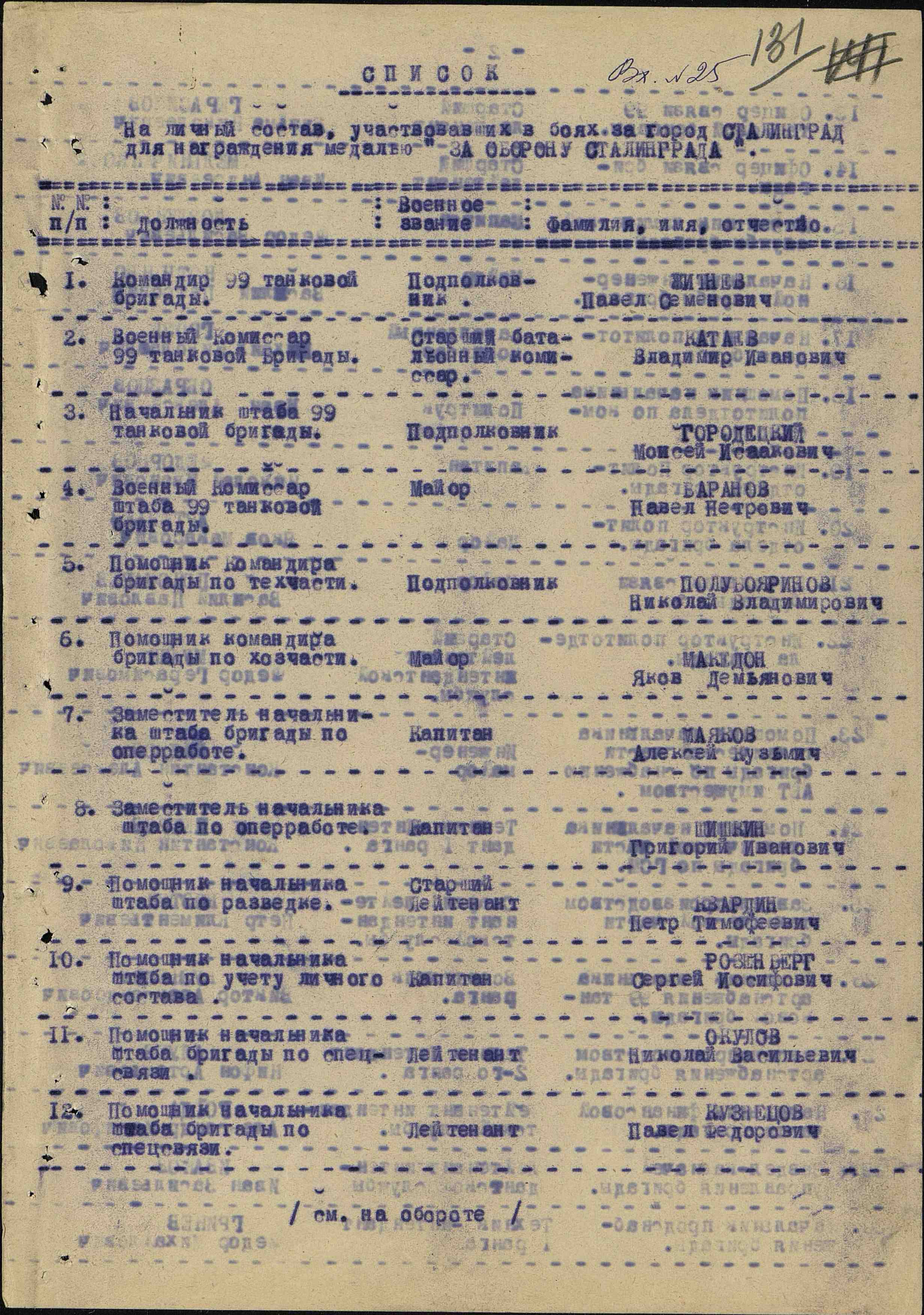 Из наградного листа: