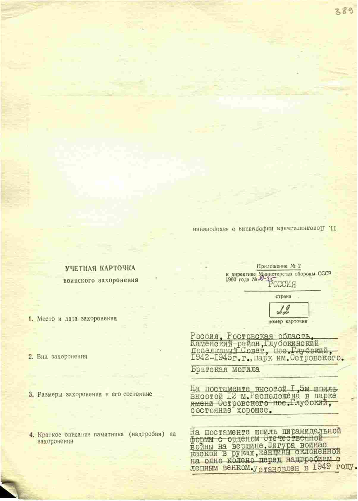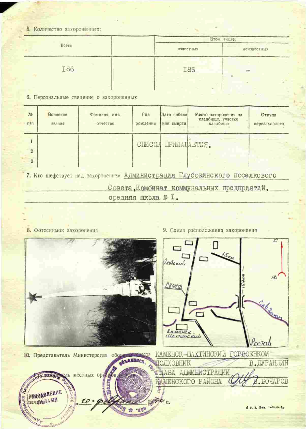 Похоронен в Ростовской обл. Каменский р-н, Глубокинский поселковый совет, п. Глубокий, парк им. Островского.