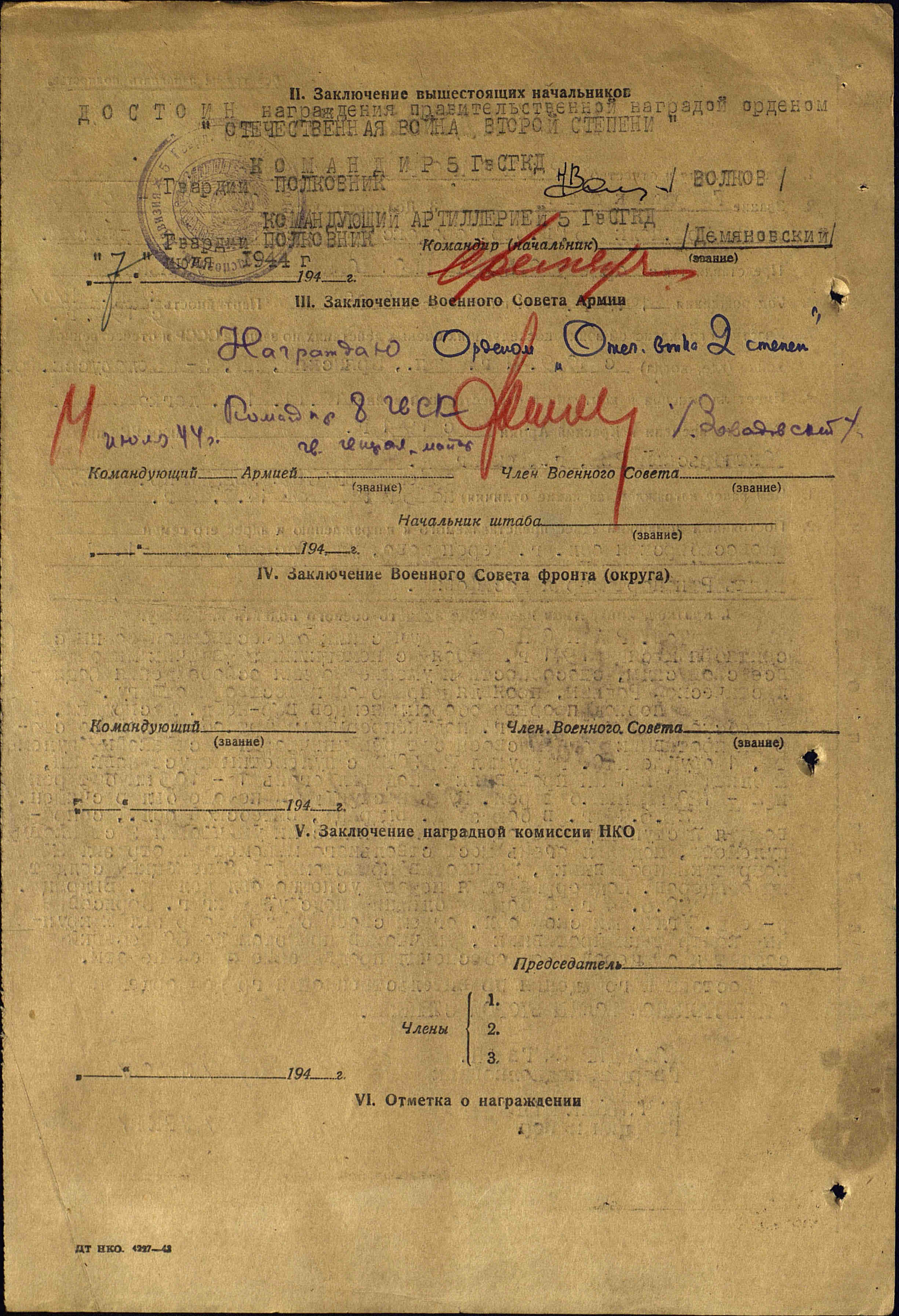 заместитель командира 3-го дивизиона по строевой части, 24-го гвардейского артиллерийского полка, 5-й гвардейской стрелковой Городокской Краснознаменной дивизии
