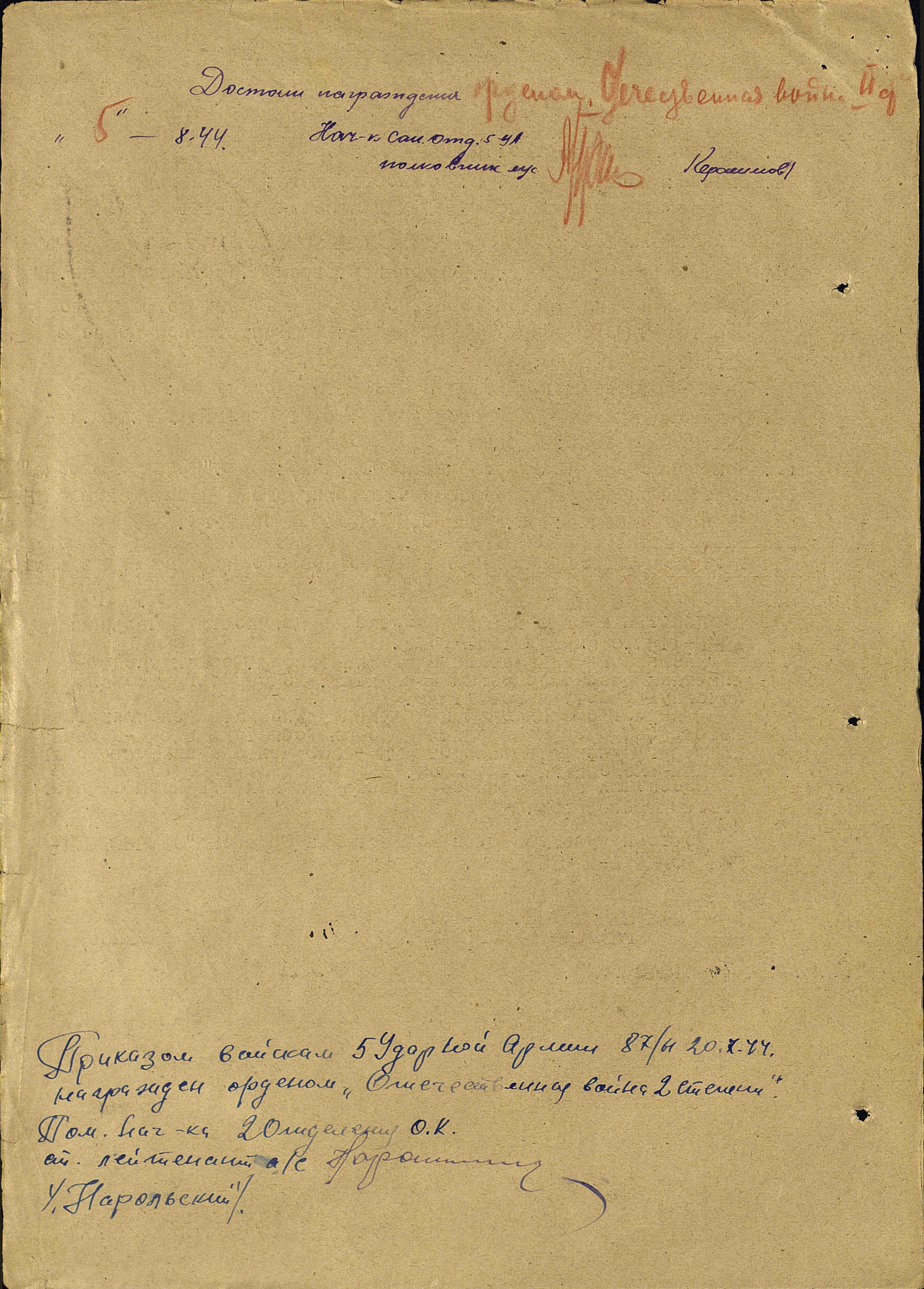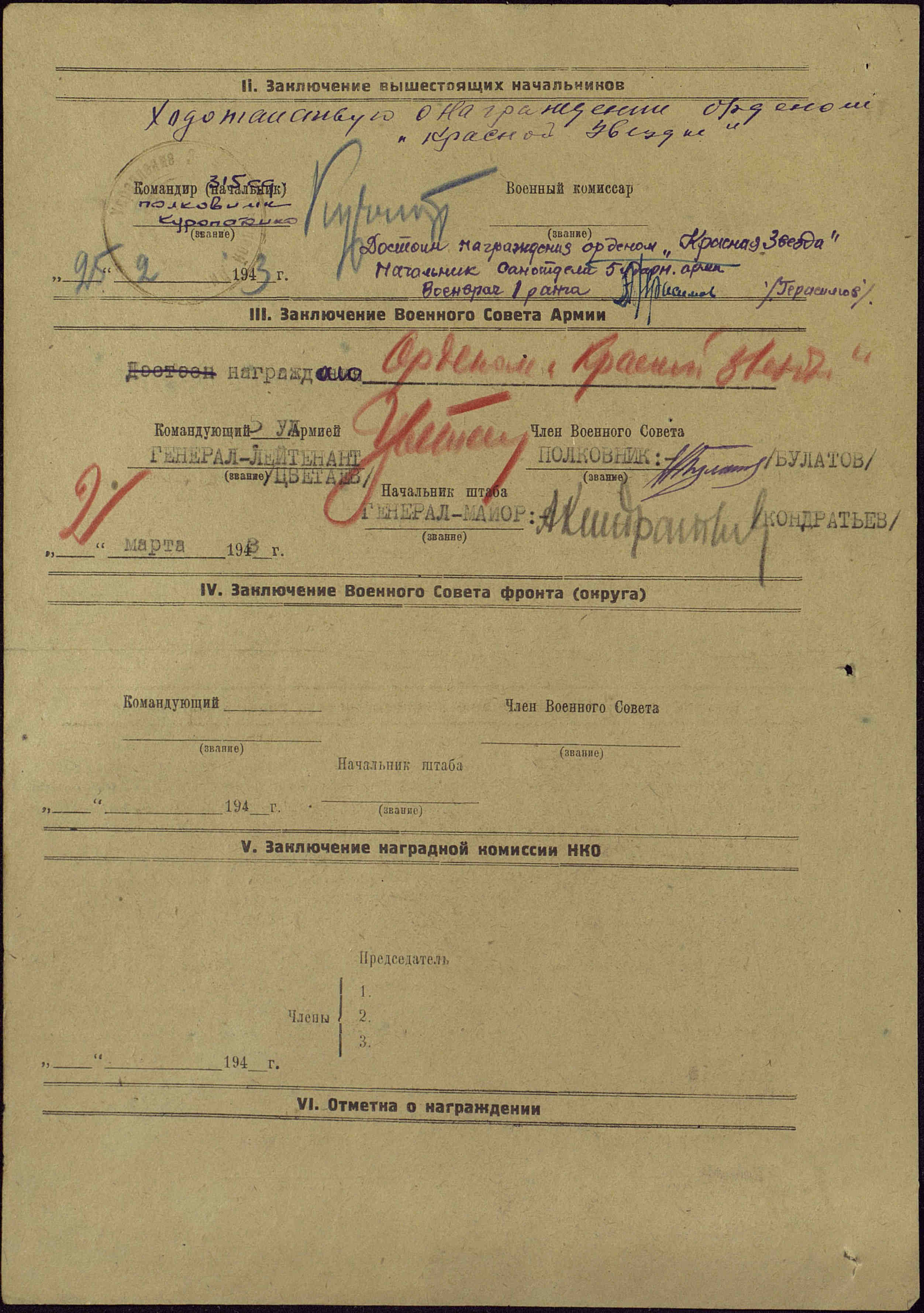 Достоин Правительственной награды Орденом Отечественная война 2-й степени.