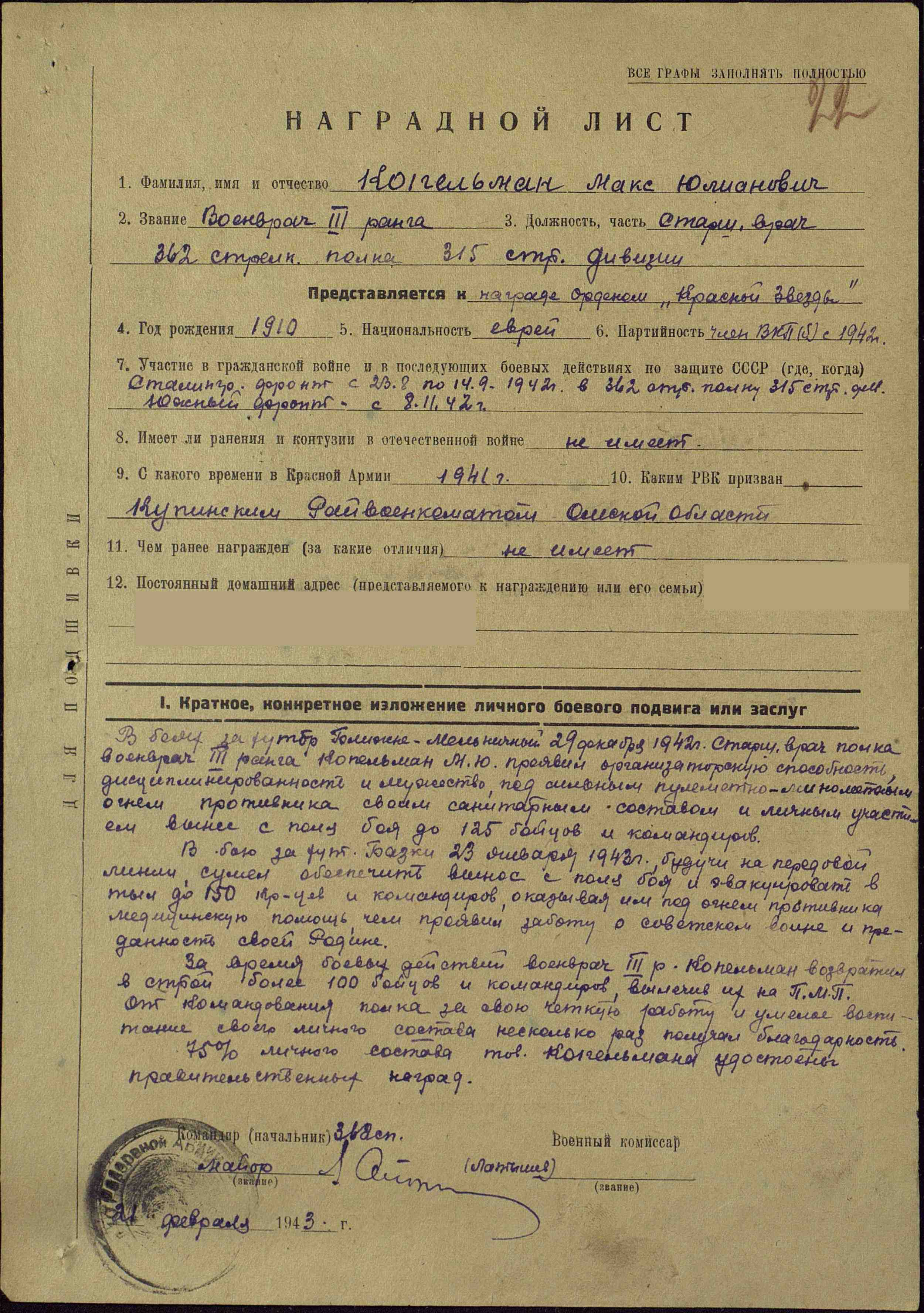 Энергичный инициативный администратор. Создал крепкоспаянный работоспособный коллектив. Хорошо организовал лечебную работу в госпитале.