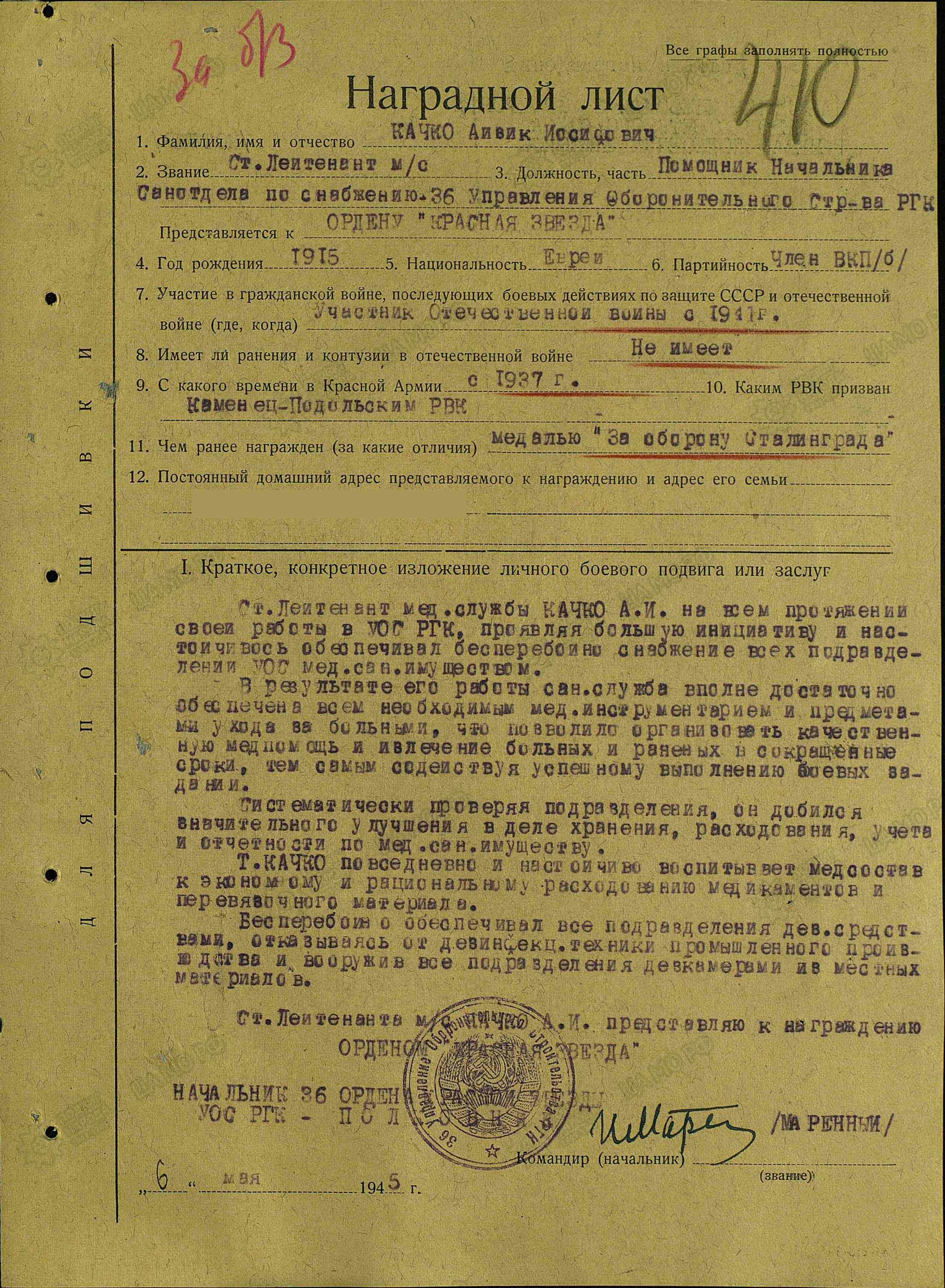 Качко Аизик Иосифович родился в 1915 году. Еврей.