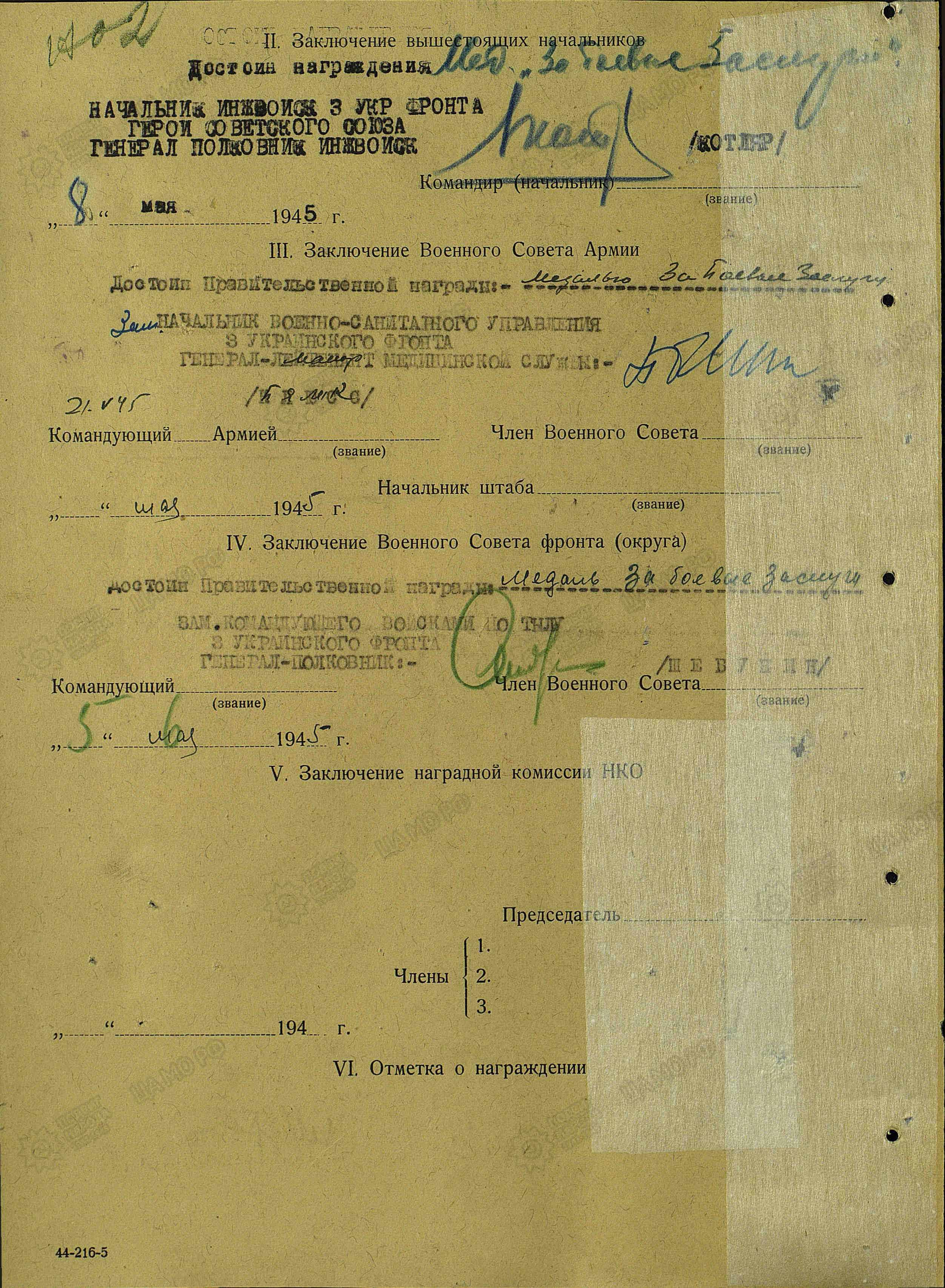Во время войны помощник начальника санитарного отдела 36 упрвления оборонительныз сооружения РГК.