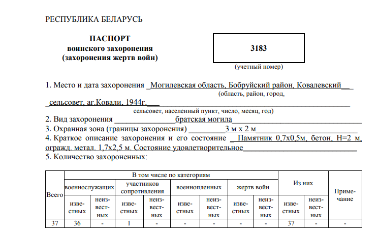 4. Фотография и сведения о захоронении( с http://bobruisk-rik.gov.by/downloads/war/passporta/pass3183.pdf ):