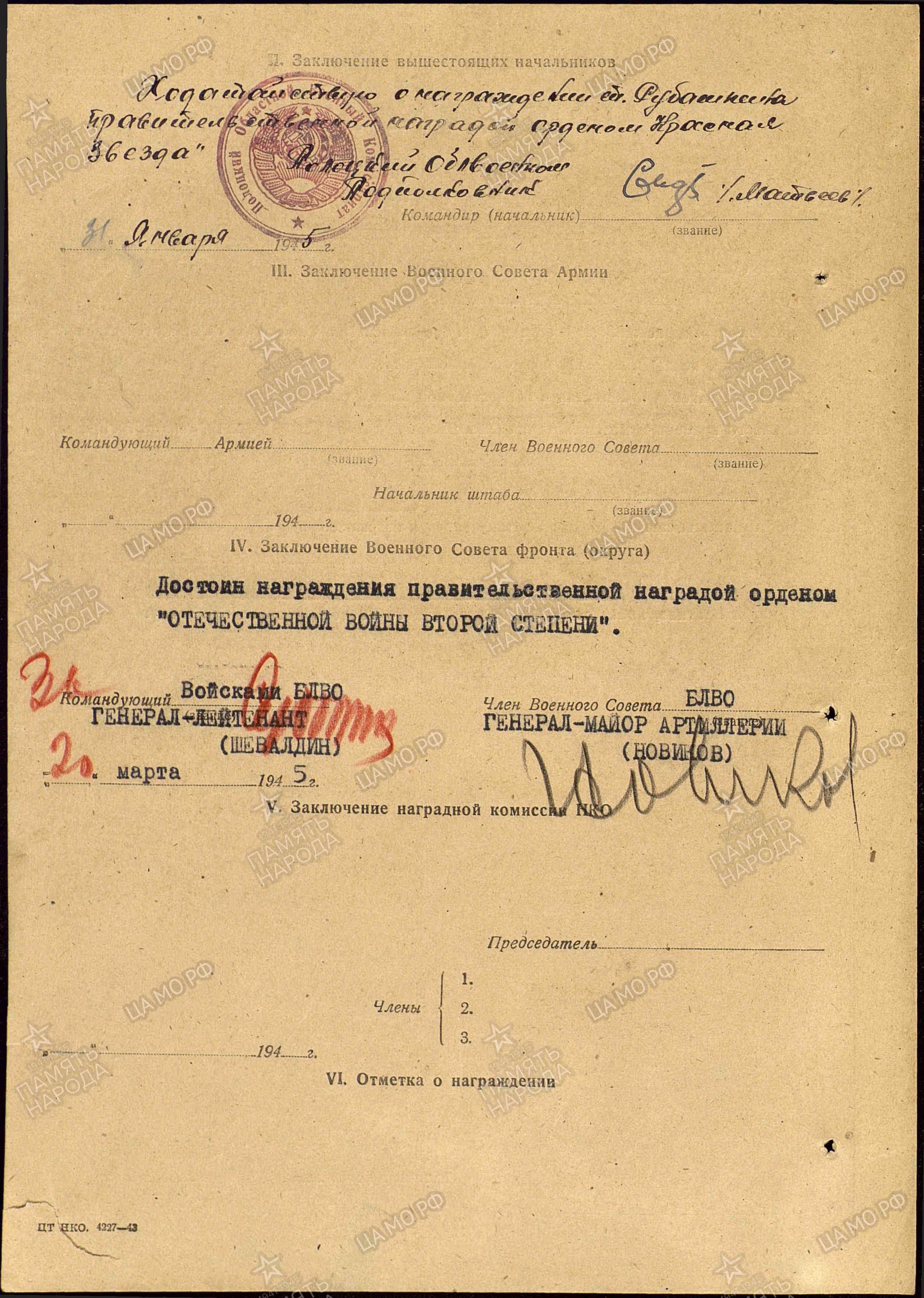 ЛИЧНАЯ СТРАНИЦА на гвардии старшего лейтенанта РУБАШКИНА М. Ш.: