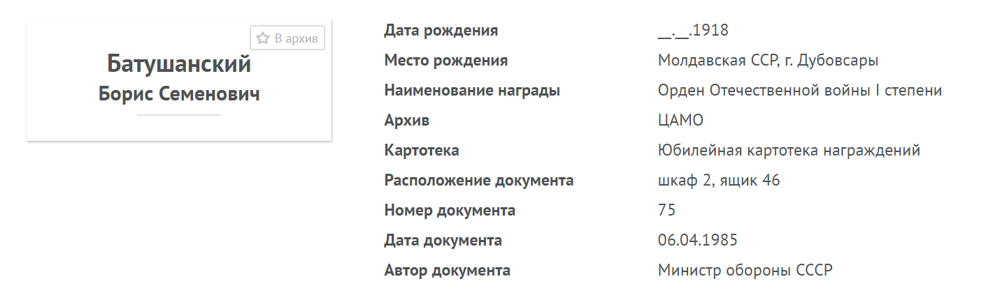 Батушанский Борис Семенович (Барух Шимонович) 1918-1997