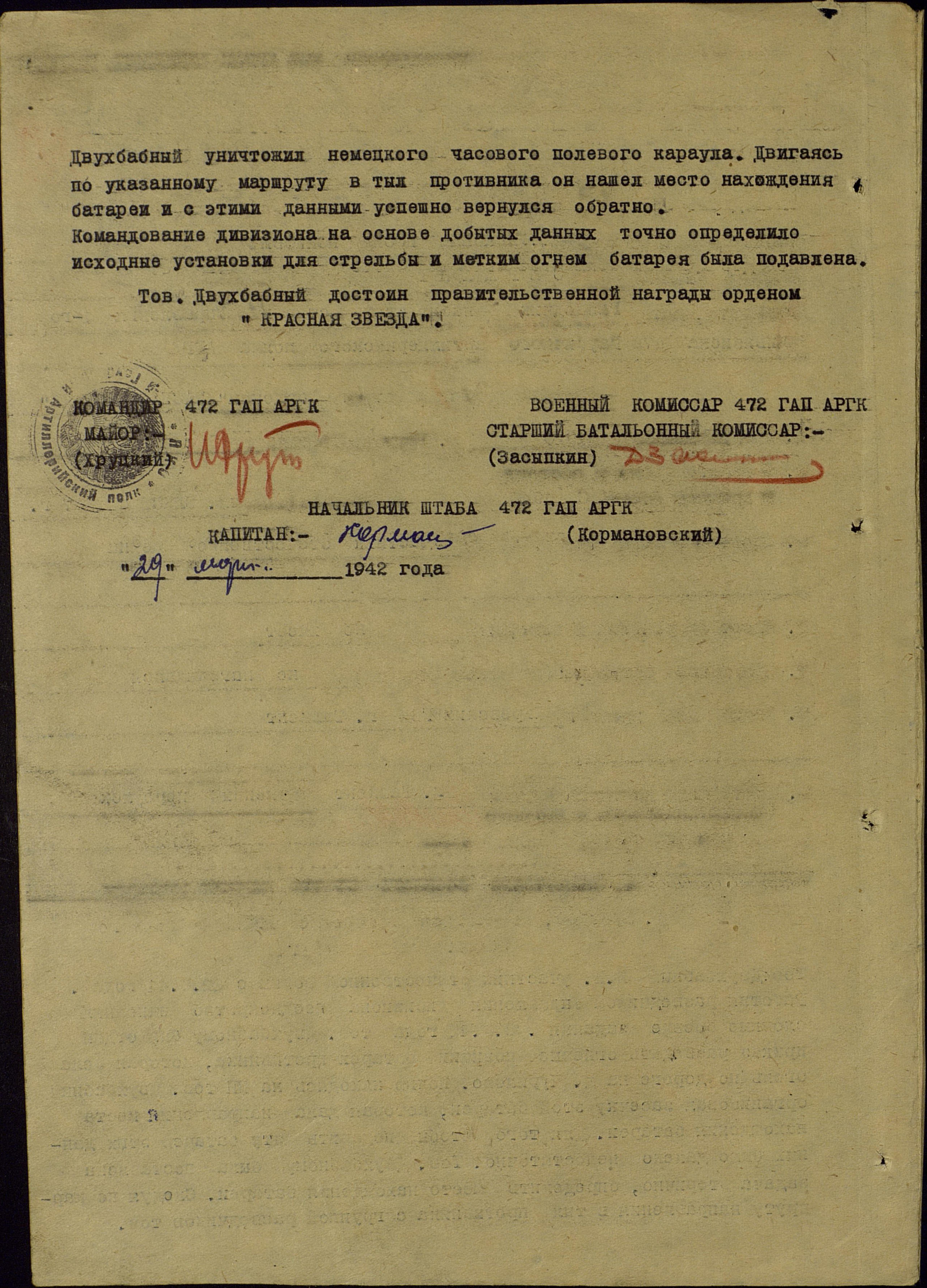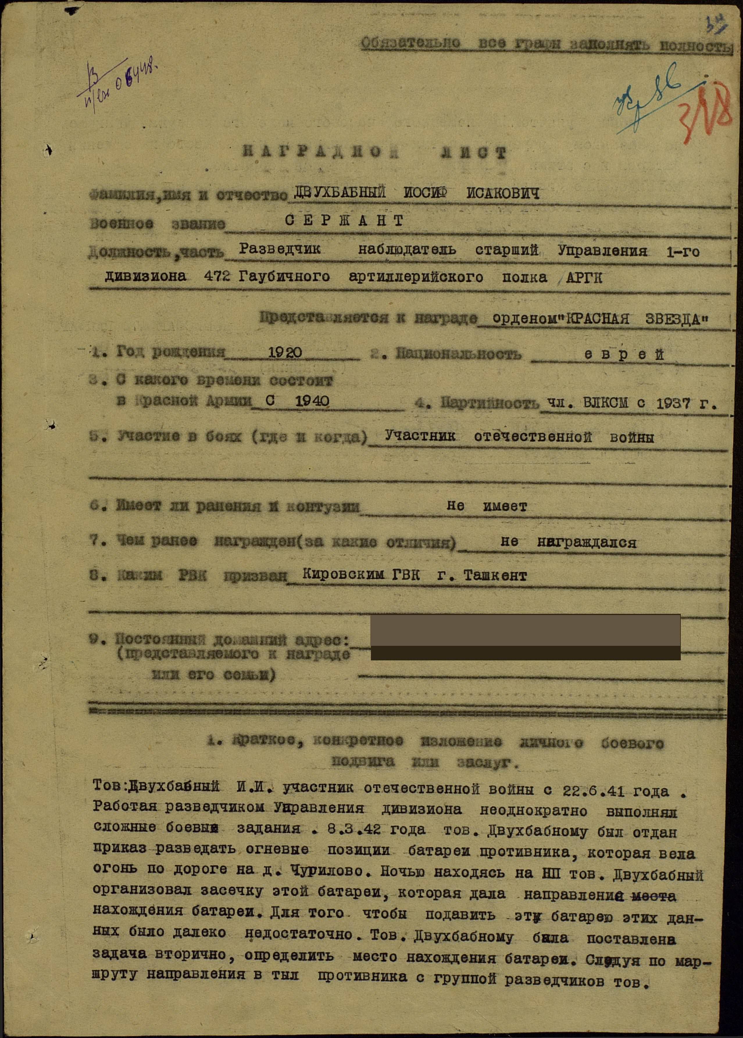 -Защиты г. Москвы, награжден 1-м орденом "Красной Звезды"