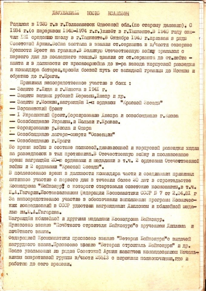 Федерацией Космонавтики присвоено звание "Ветеран Байконура" и др. После увольнения из рядов Советской Армии назначен командованием Начальником оперативной группы в/части 25513 с широкими полномочиями, где и работаю до сего времени.