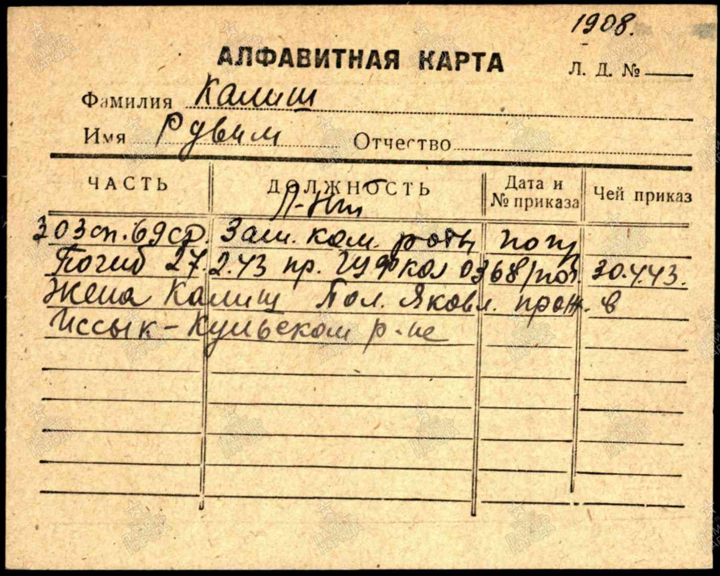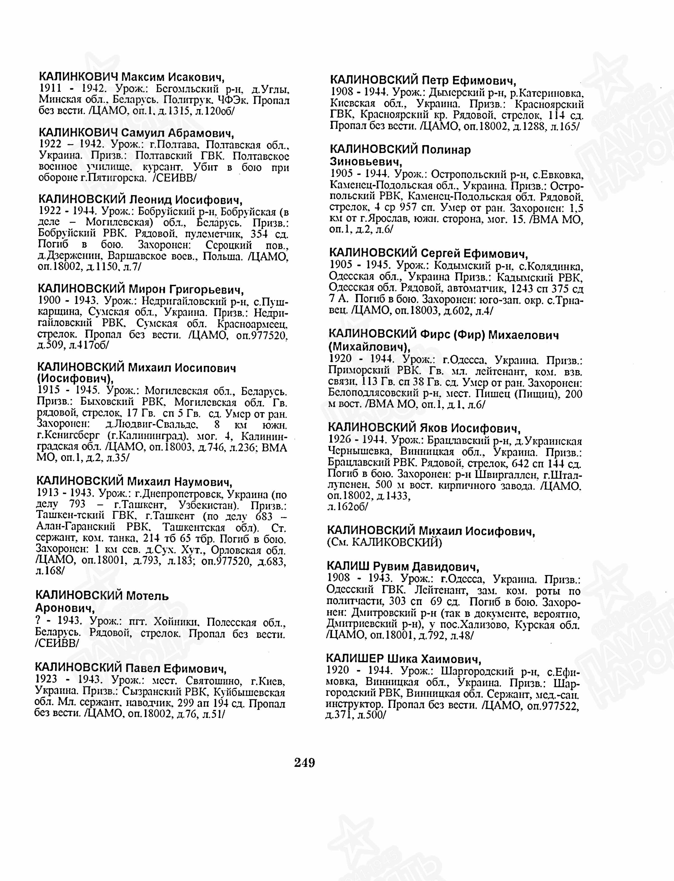 Калиш Рувин Давидович родился в 1908 году в городе Одессе. Еврей. Нет данных о довоенной жизни.