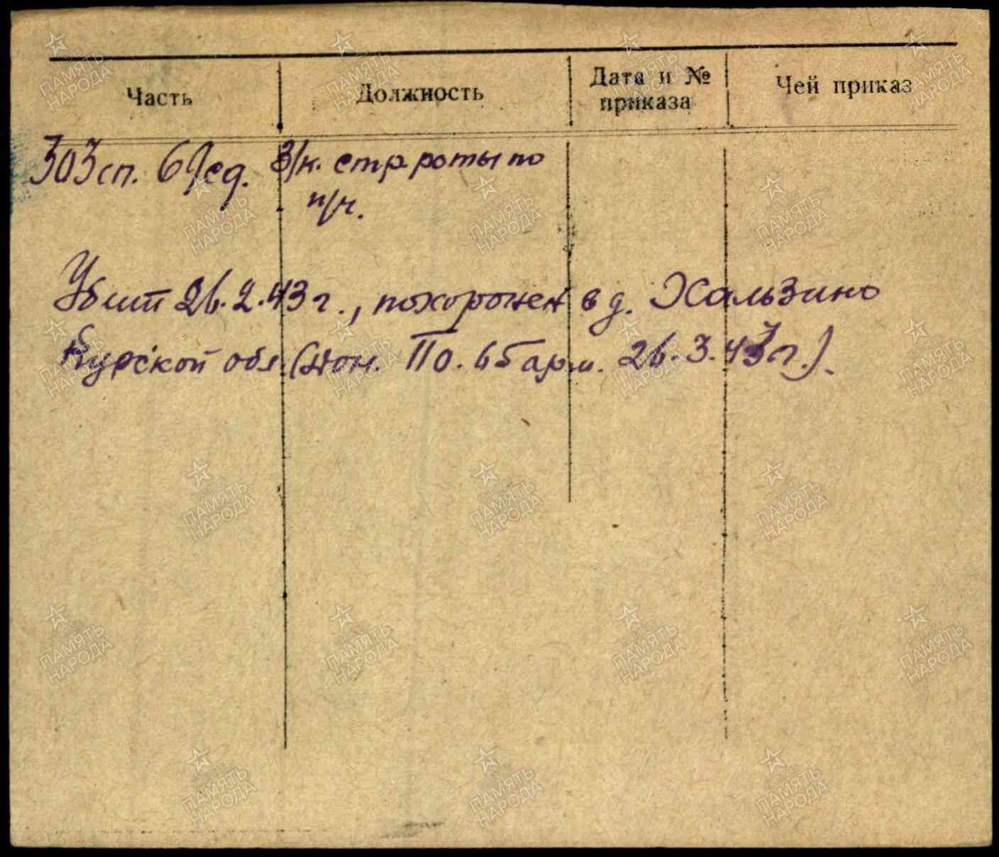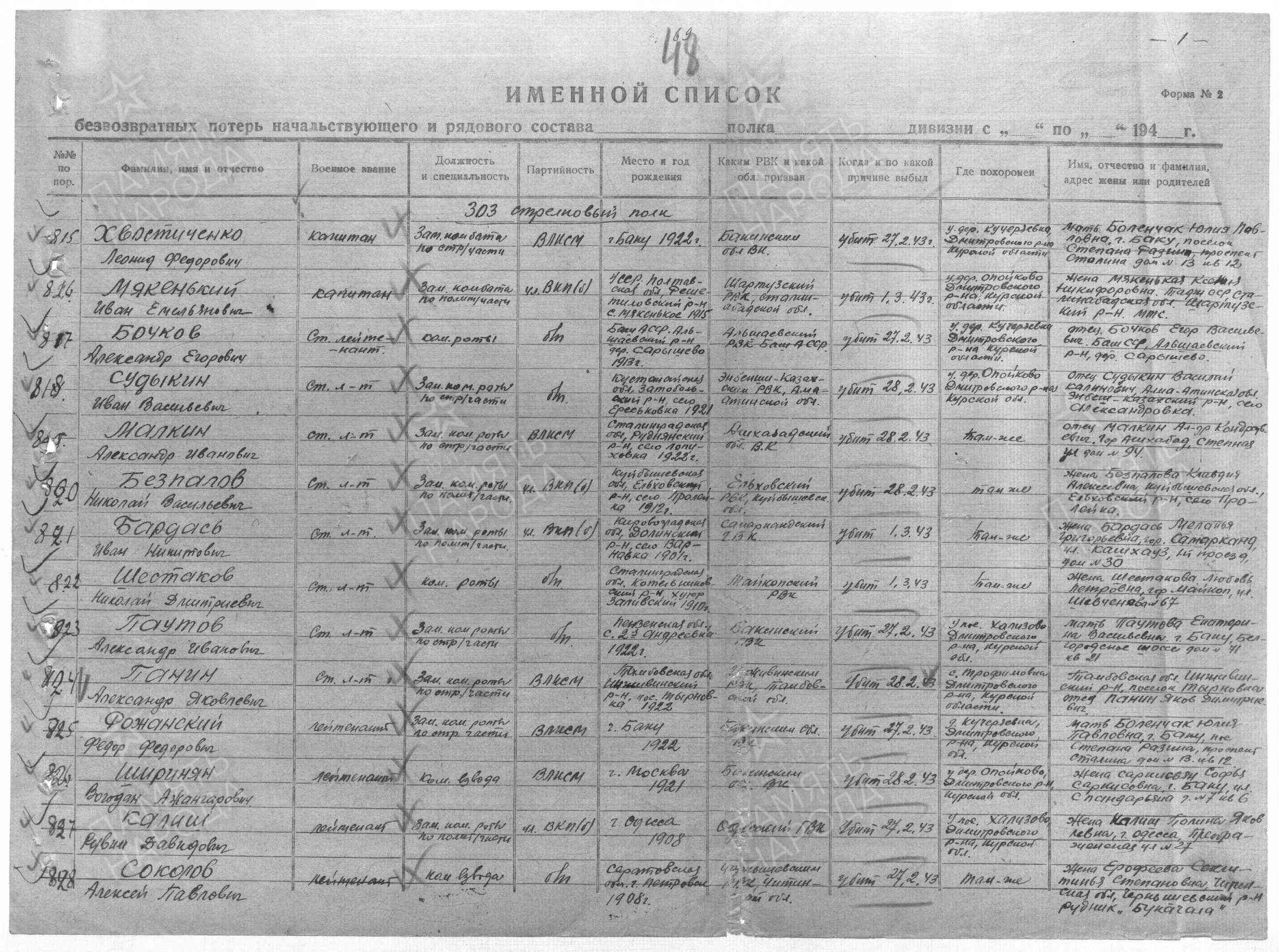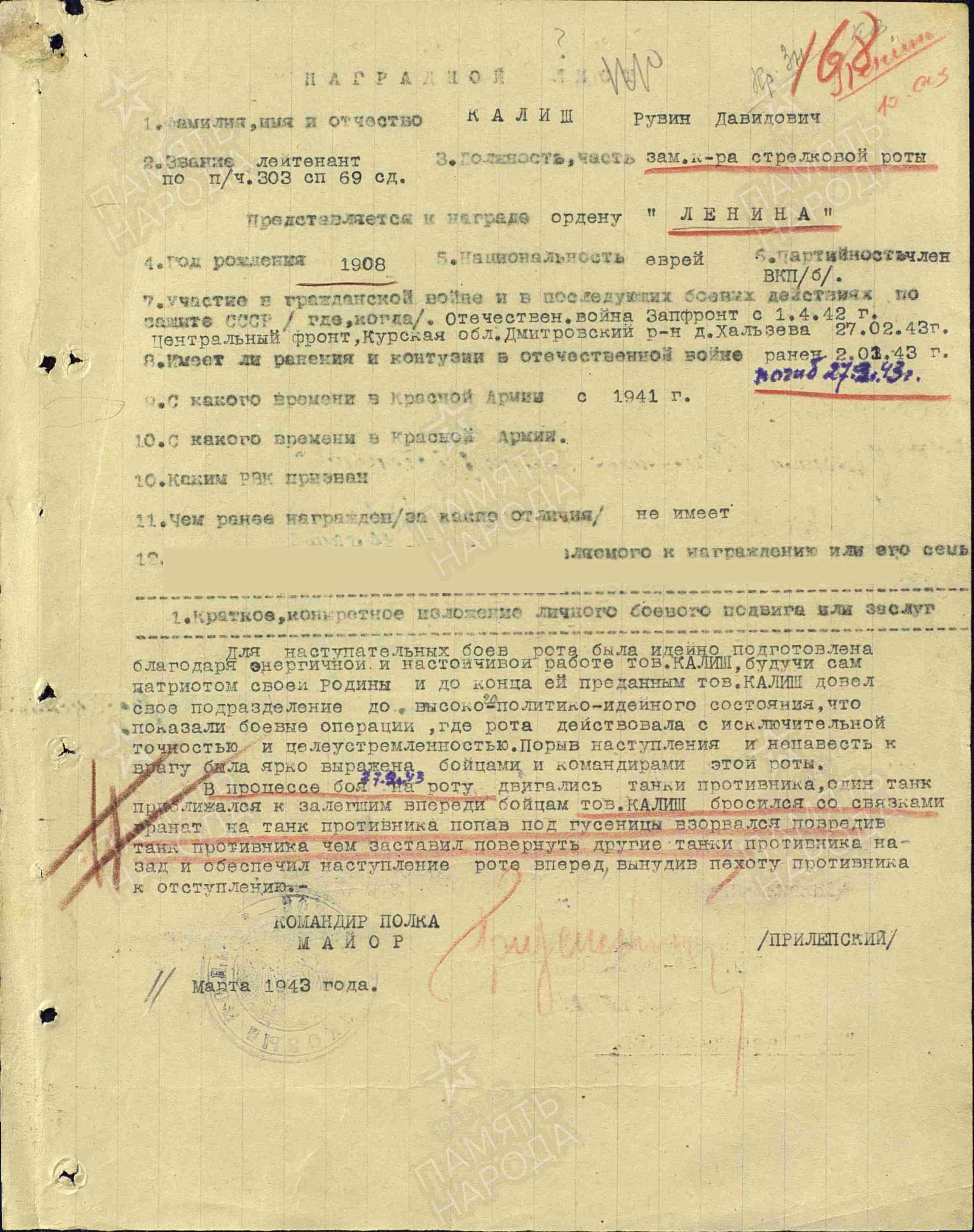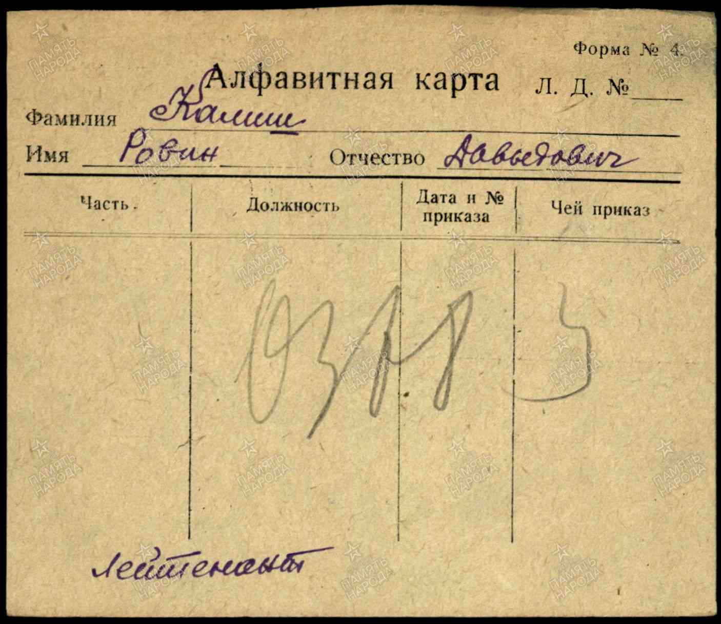 Лейтенант, __.__.1908 Украинская ССР, Одесская обл., г. Одесса. Сводная картотека