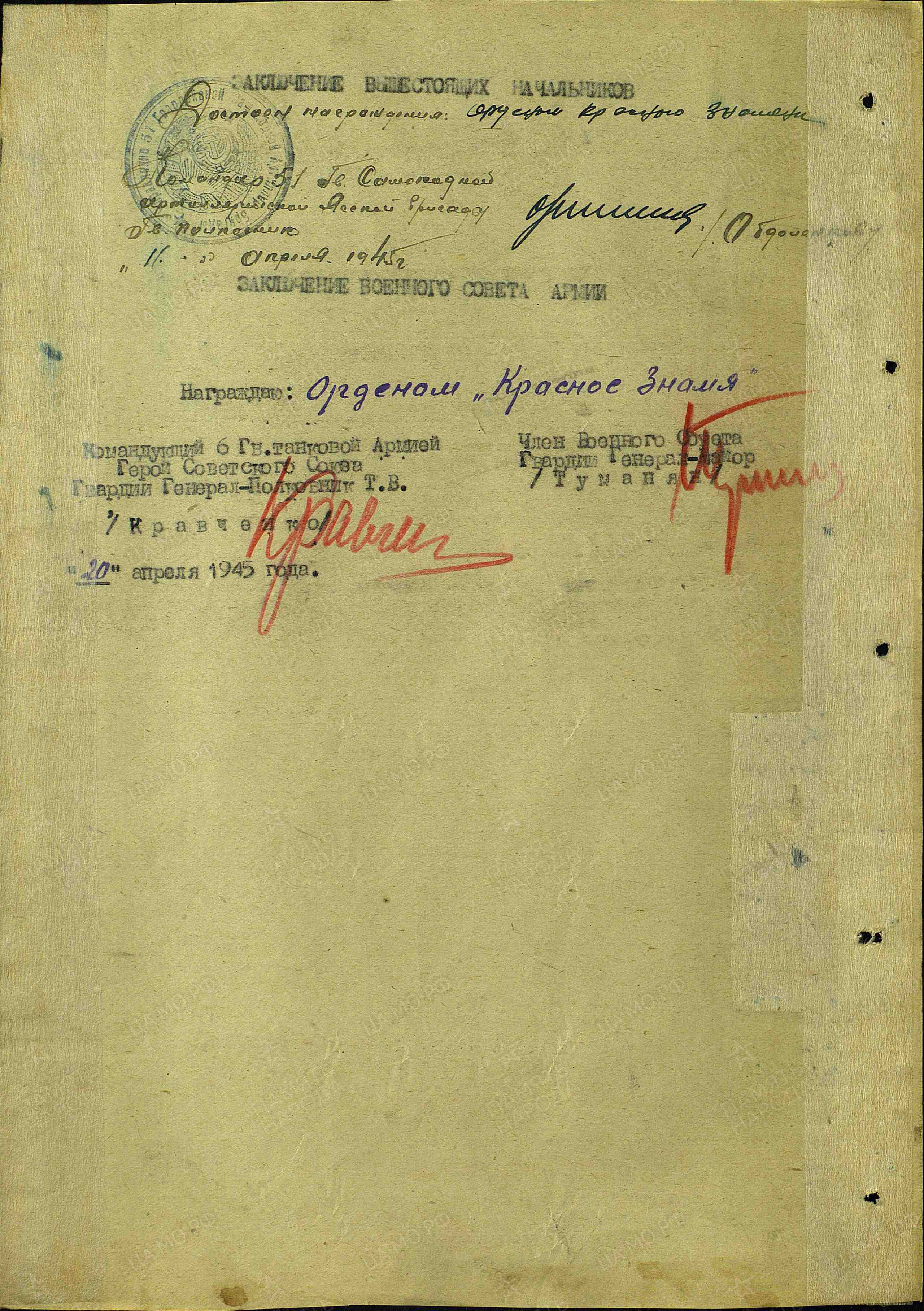 4. Первичная  информация и фотография на гвардии старшего лейтенанта ХОДЫРКЕРА З.Б., предоставлена: