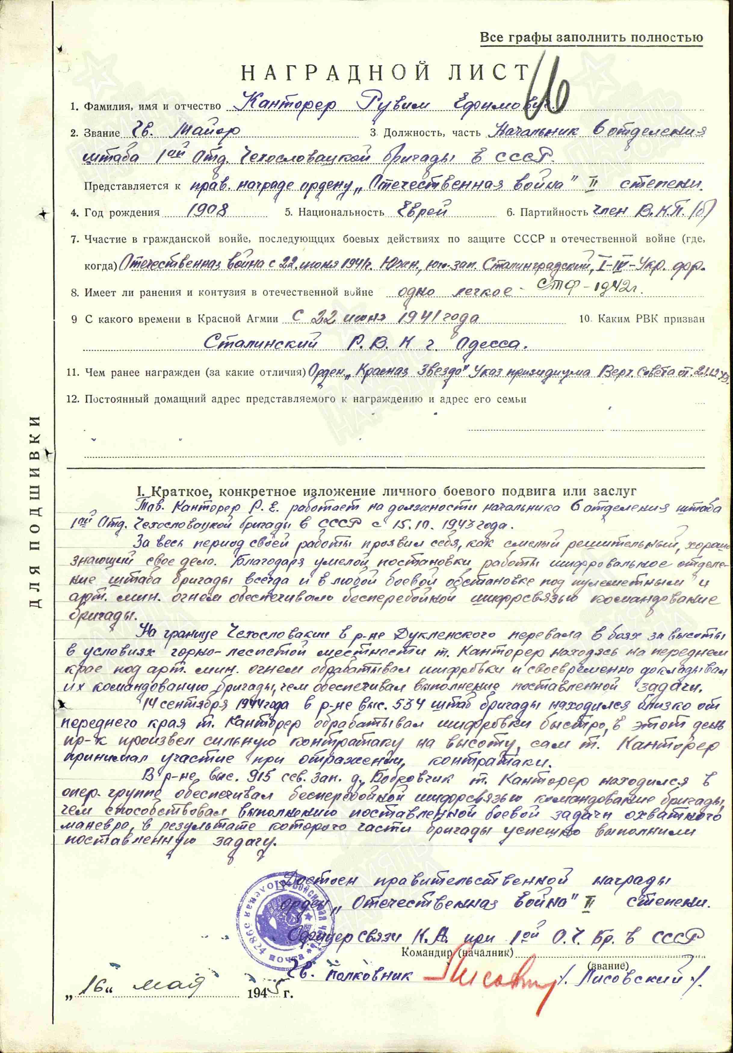 ЛИЧНАЯ СТРАНИЦА на гвардии майоре КАНТОРЕРЕ Р. Е.: