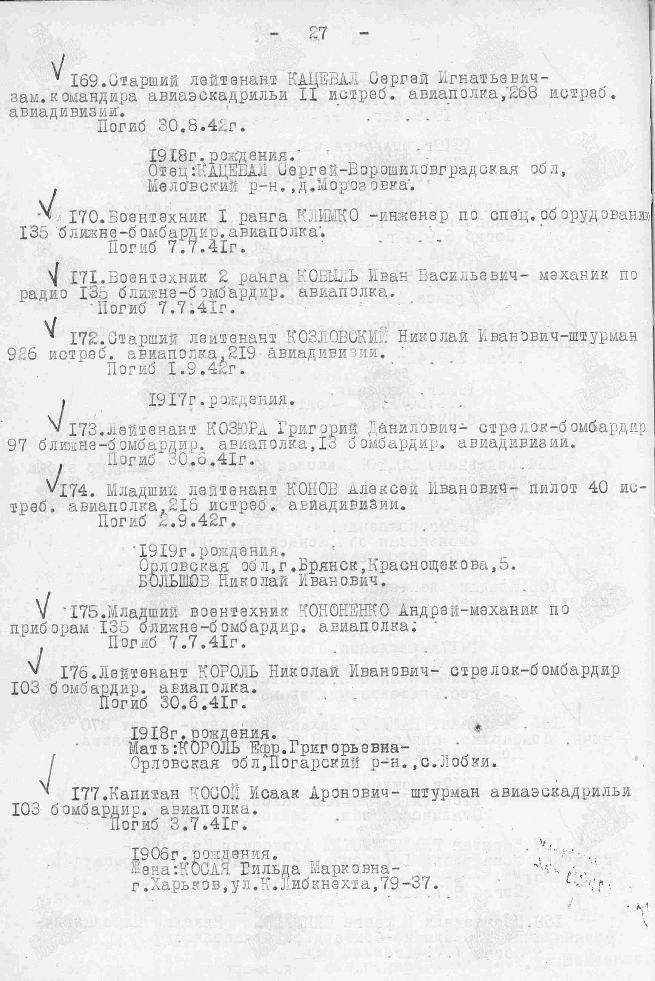 Примечание: Капитан КОСОЙ И. А. погиб, в воздушном бою, 3.07.1941 года.