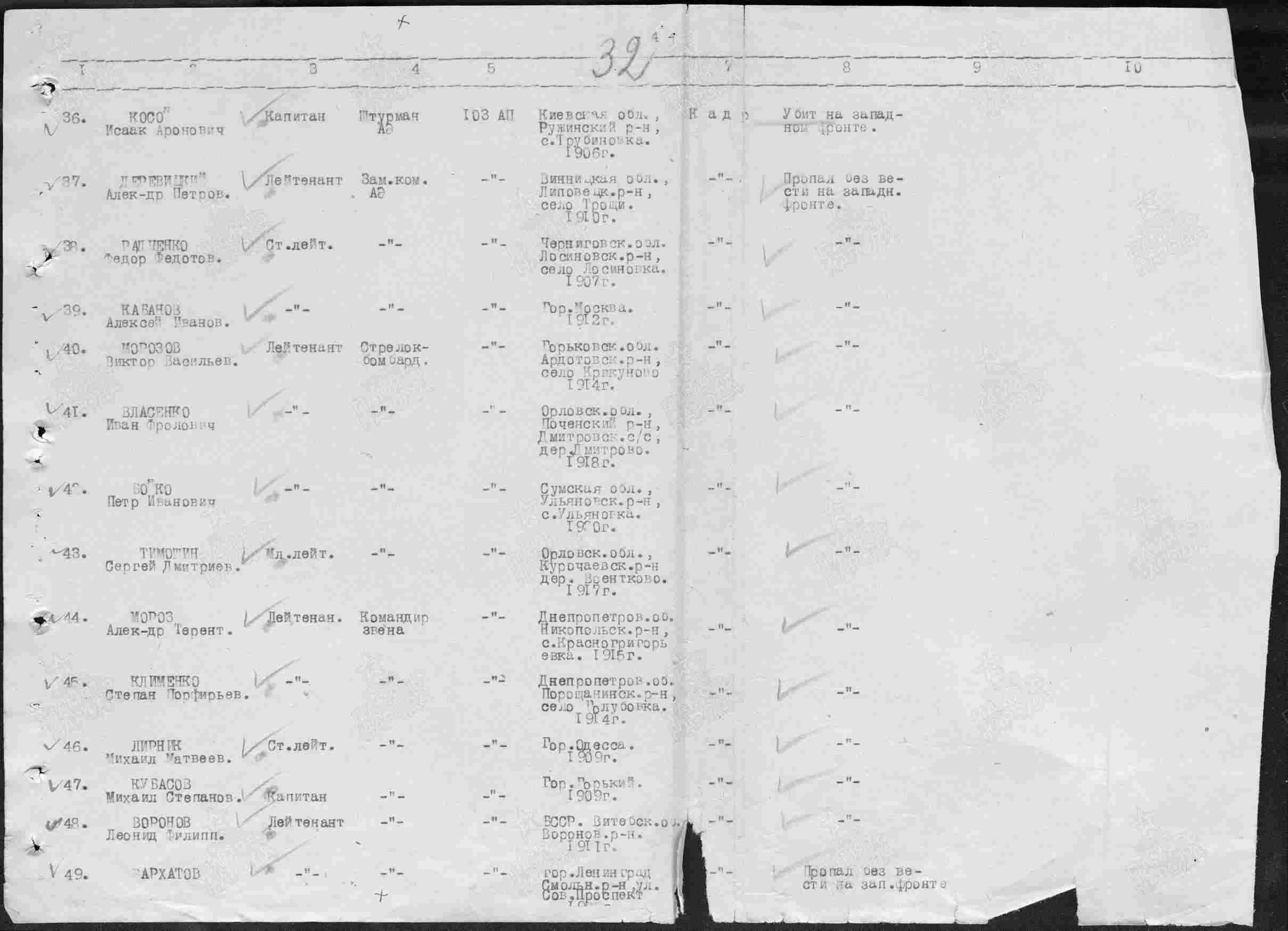 Данные из УПК (учётно - послужной карты, портал "ПАМЯТЬ НАРОДА").
