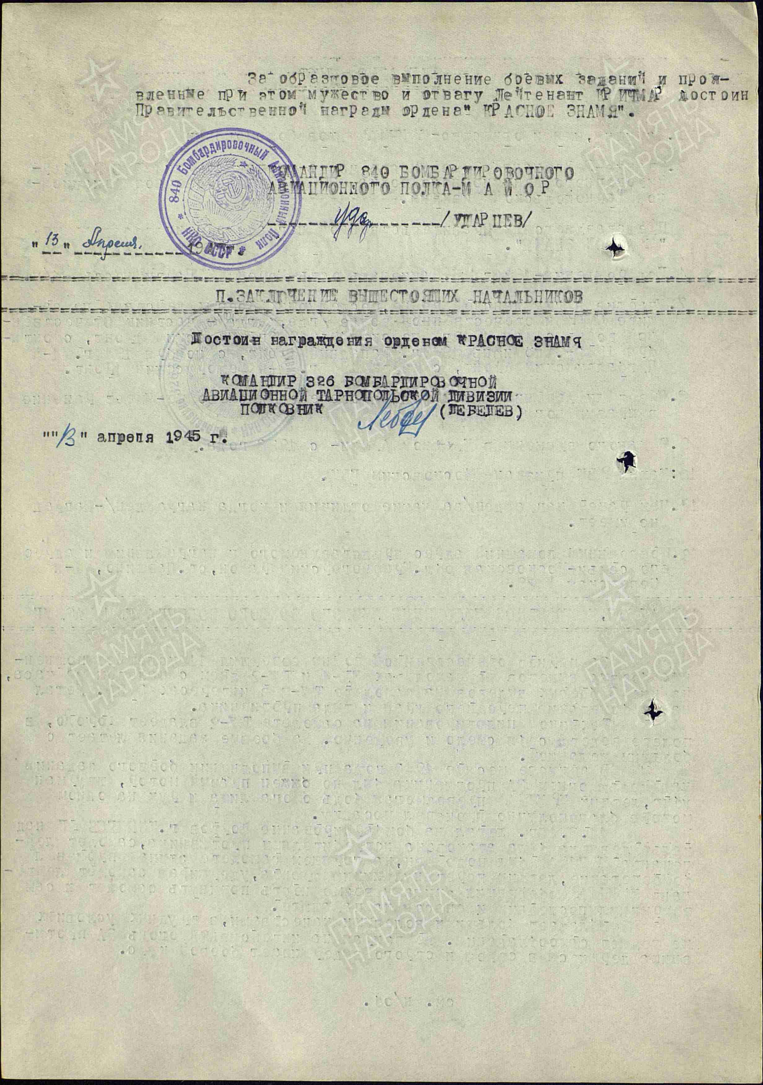 2. 840 бомбардировочный авиационный полк ("Авиаторы Второй мировой":   http://allaces.ru/sssr/struct/p/apdd840.php   ; Наша Победа:  https://www.nashapobeda.lv/3822.html  ; "Проза.ру":  https://proza.ru/2017/12/07/2279   );