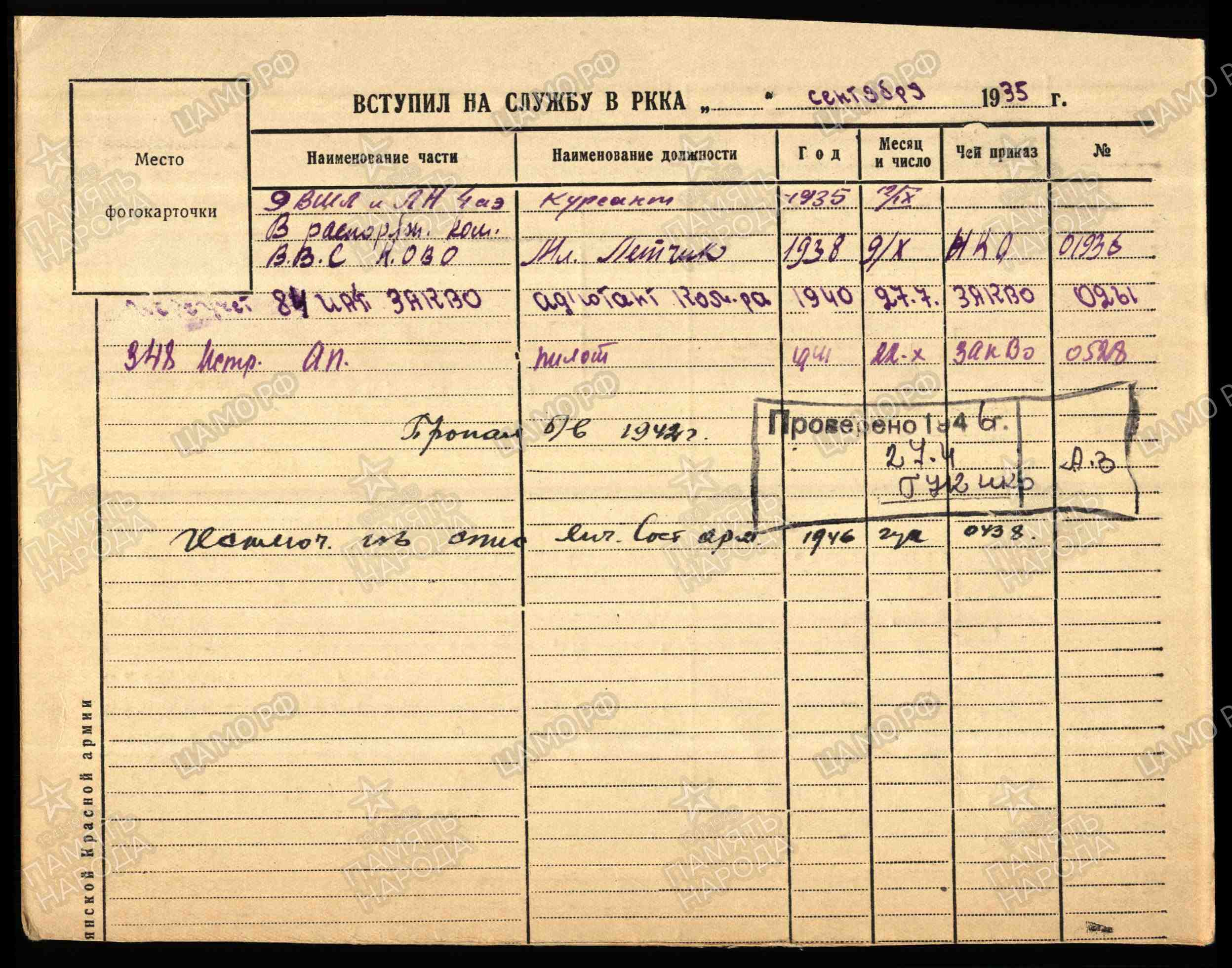 .Данные из УПК (учётно - послужной карты, портал "ПАМЯТЬ НАРОДА").
