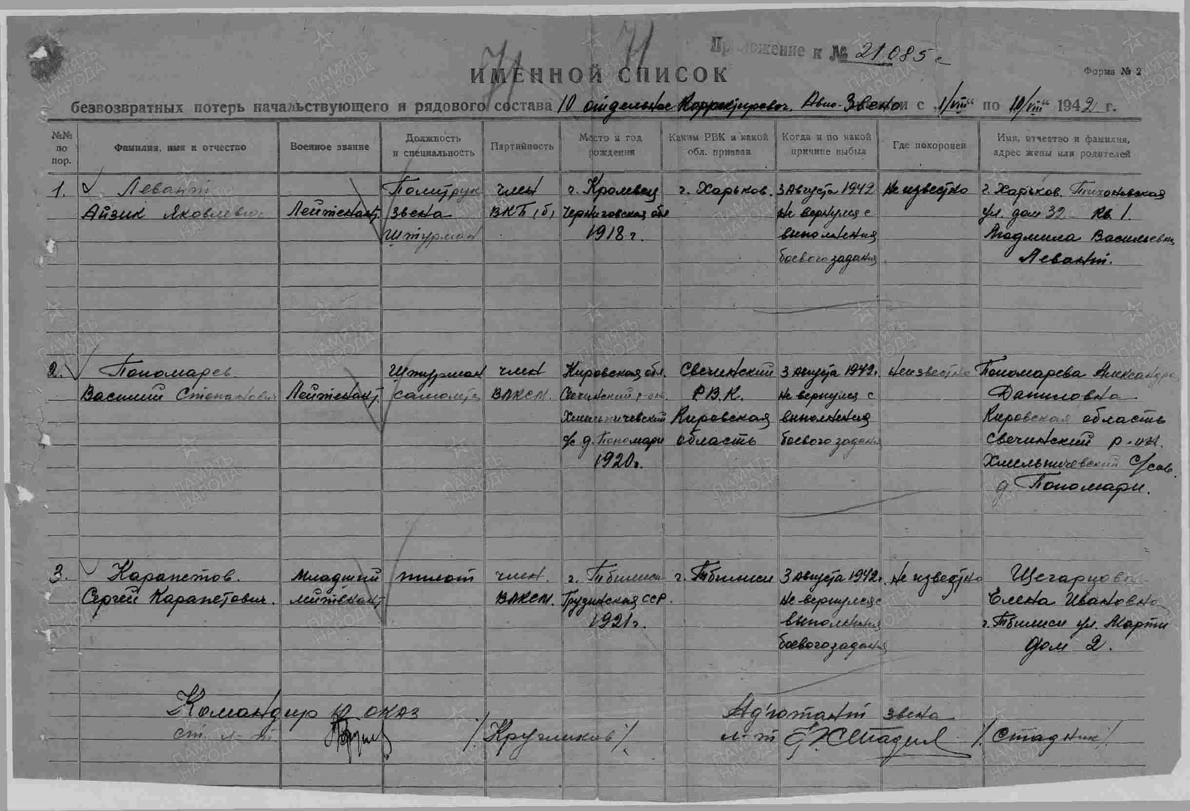 Данные из УПК (учётно - послужной карты, портал "ПАМЯТЬ НАРОДА").