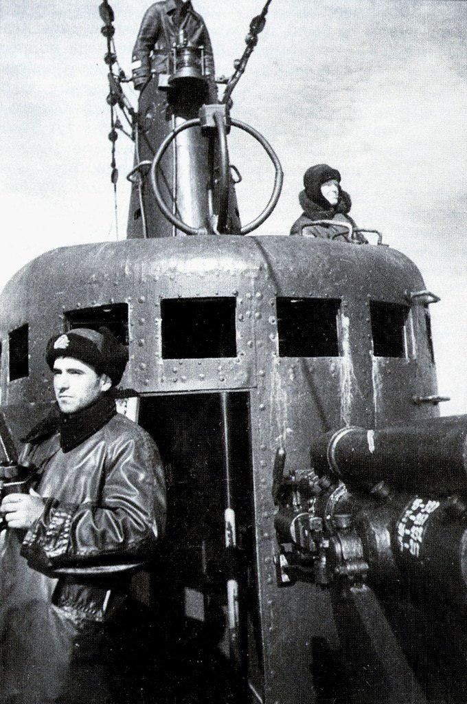 На мостике «К-22». Слева у носового 45-мм орудия командир торпедной группы старший лейтенант Тищенко.