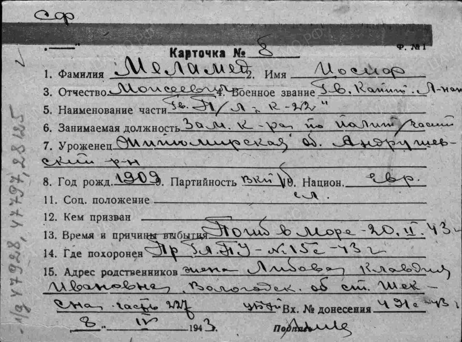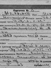 6. ЛИЧНАЯ СТРАНИЦА на гвардии капитана - лейтенанта МЕЛАМЕДА И. М. , подготовлена: