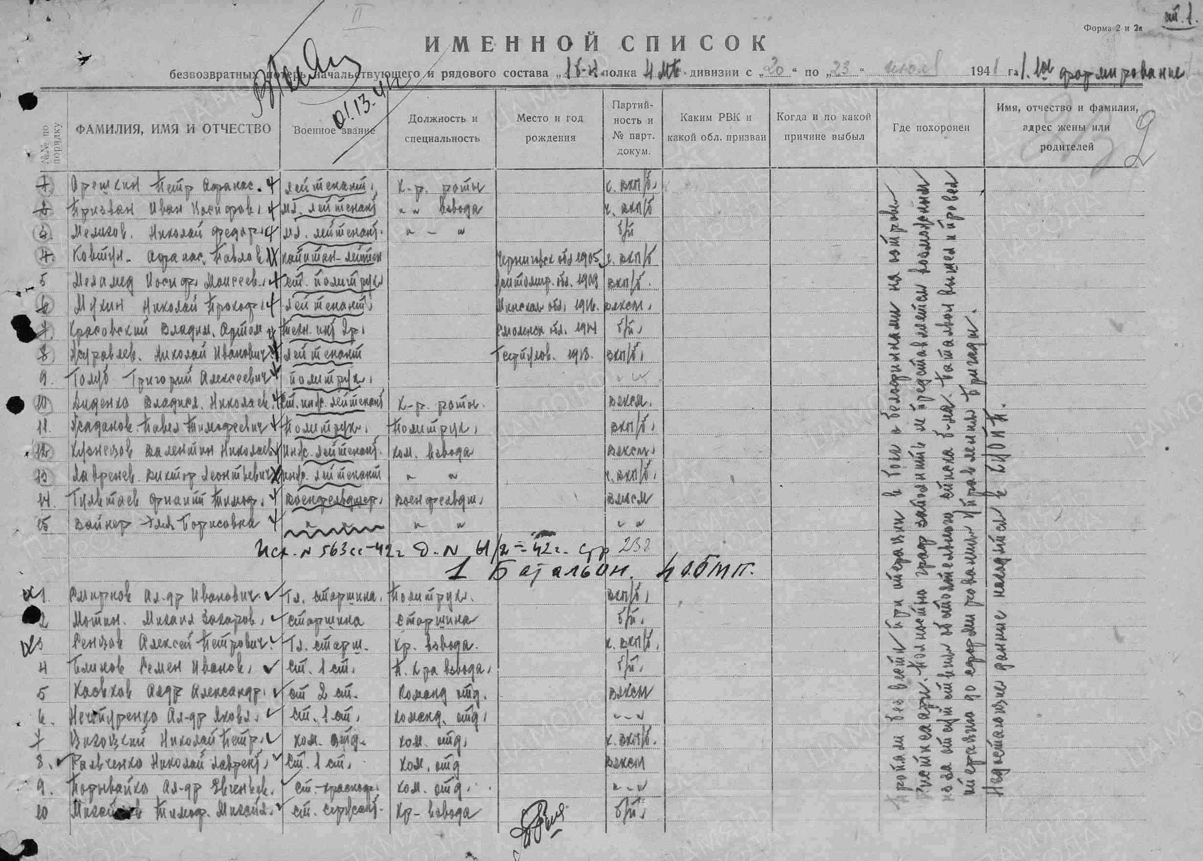 - Информация из донесения о безвозвратных потерях.