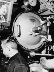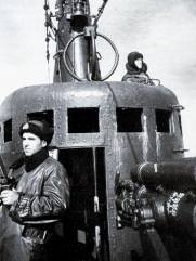 Моторист «К-22» старший краснофлотец В.З. Рубцов у поста управления дизелями
